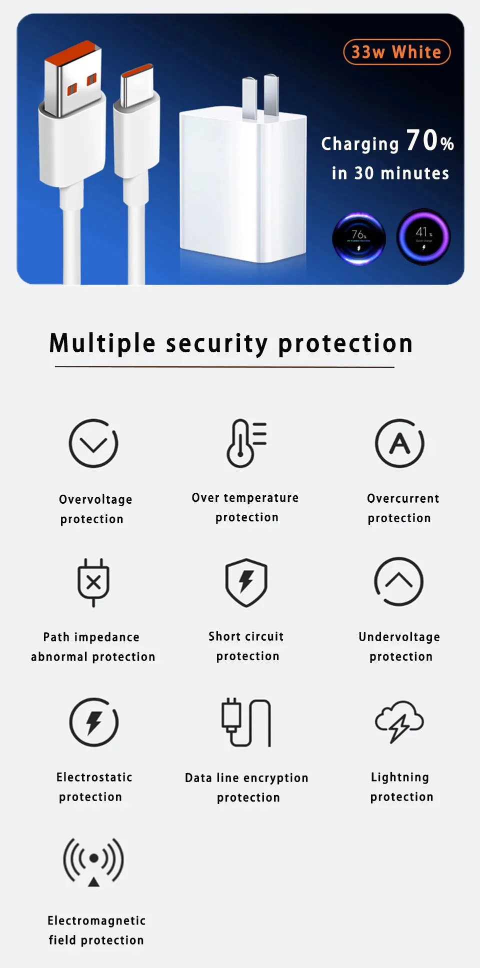 33W Compatible with : Xiaomi Mi 11X Pro/Mi 11X/Mi 11i/Mi 10S/Mi 10T Pro 5G/Mi 10T 5G/Poco X3 Pro/Poco F3/Poco X3 NFC/Poco X3/Poco X2/Poco M2 Pro/Poco F2 Pro/Xiaomi Pad 5/Redmi Note 9 Pro 5G/Redmi K30S/Redmi K30 Pro/Redmi K20 Pro/Redmi 10X Pro 5G/Redmi Note 9 Pro Max/Redmi K40/Redmi Note 10 Pro/Redmi Note 10/Redmi Note 11S/Redmi Note 12 5G/Redmi Note 12S/Redmi Note 13