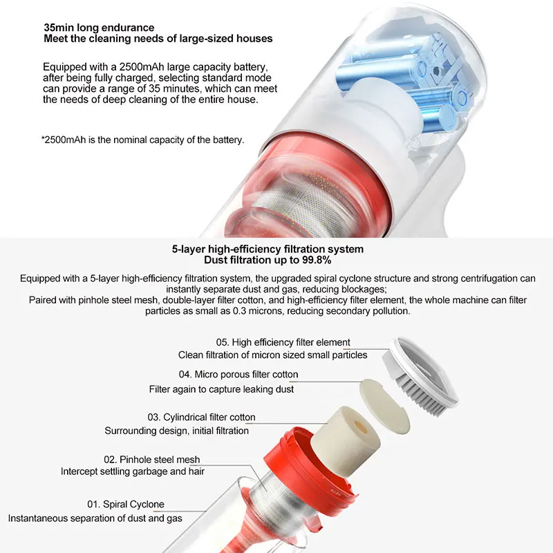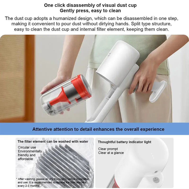 Comprar Xiaomi-aspiradora inalámbrica Mijia 2 Lite, 5 pliegues, filtración de alta eficiencia, succión ciclónica de 16kPa, aspiradora de mano ligera