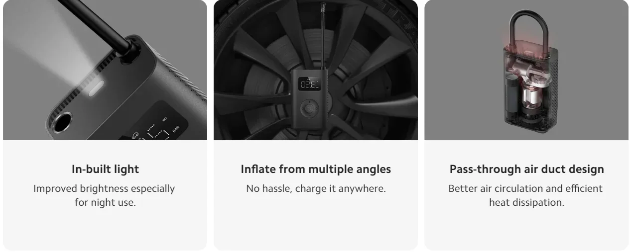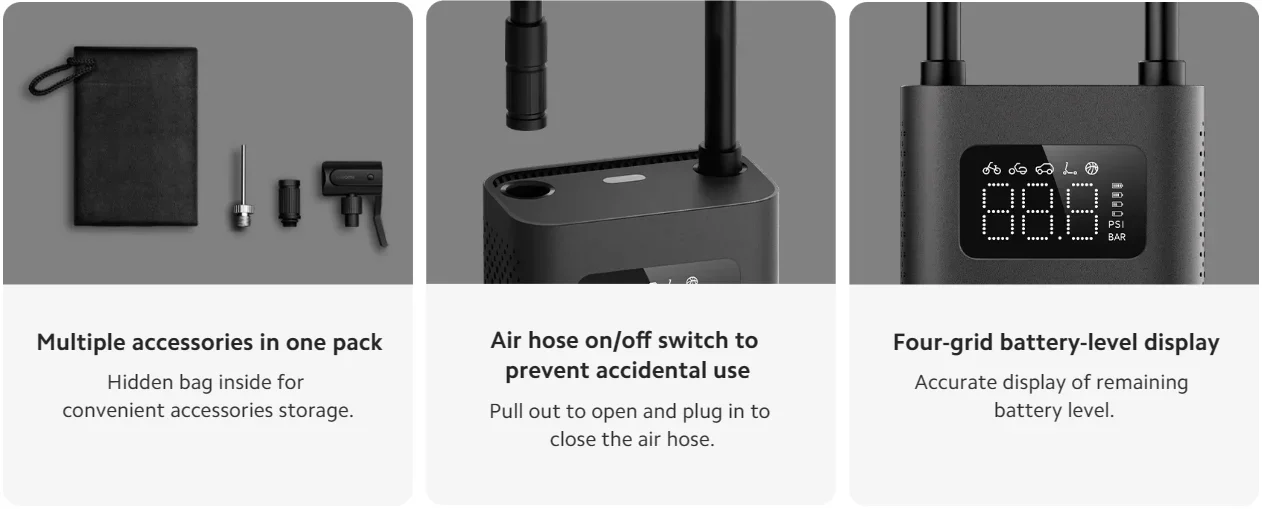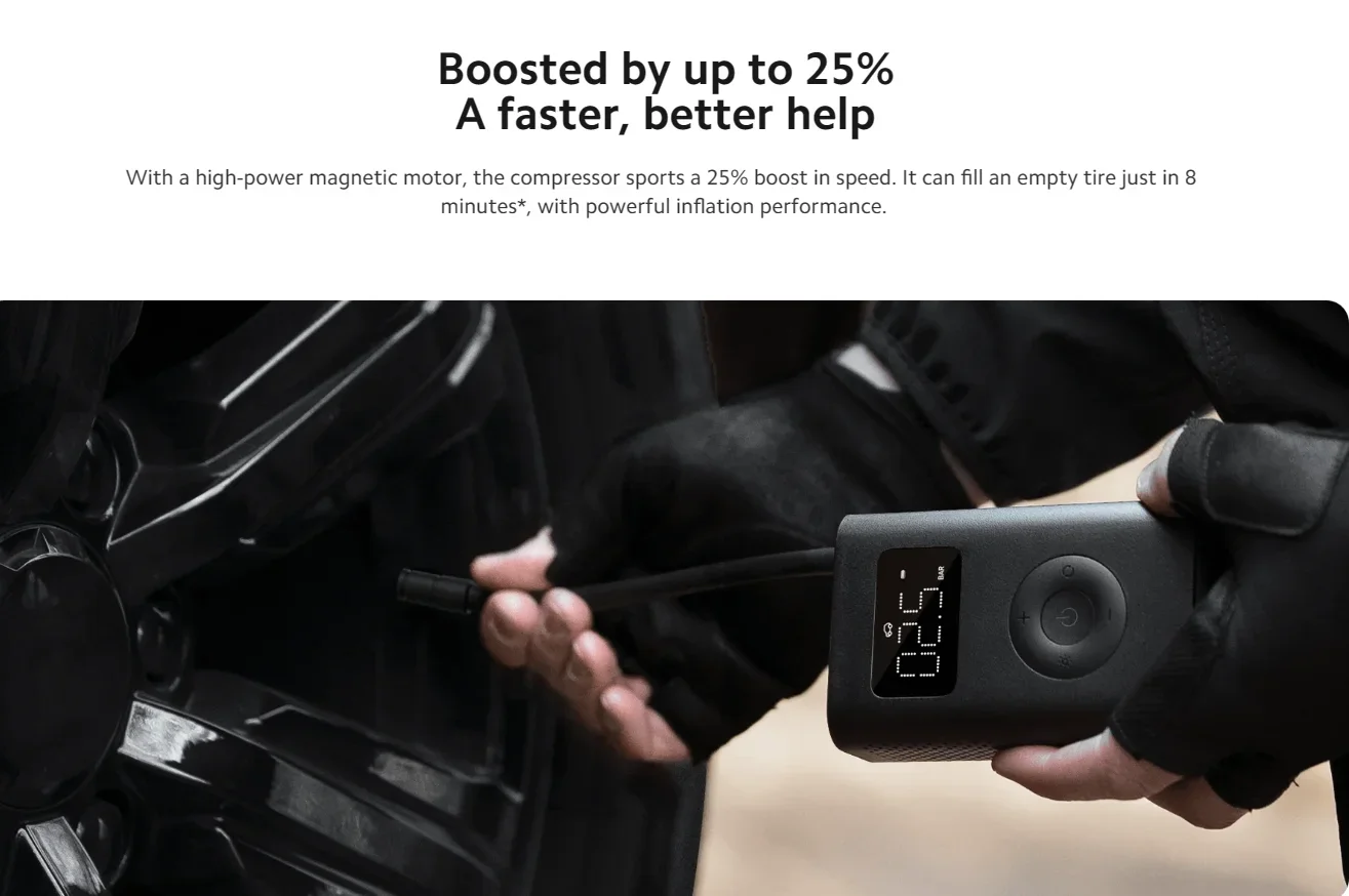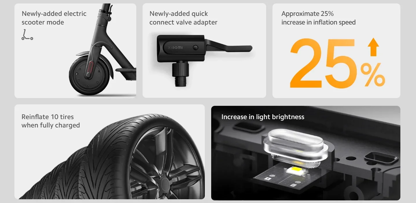 En comparación con el compresor de aire eléctrico portátil Xiaomi 1S, los detalles están optimizados, la estructura interna se rediseña con una velocidad de información aproximadamente 25% más rápida, un paso significativo hacia adelante.
