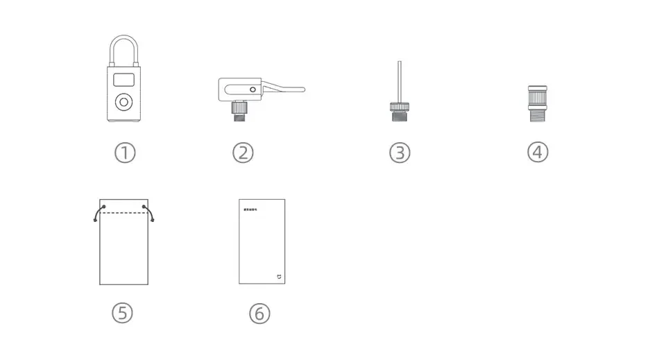 * El peso aproximado de 490G del compresor de aire eléctrico portátil Xiaomi 2 se refiere al peso del dispositivo en sí, excluyendo el adaptador de válvula Presta, la válvula de aguja, el adaptador de válvula de aire de conexión rápida y la bolsa de almacenamiento.