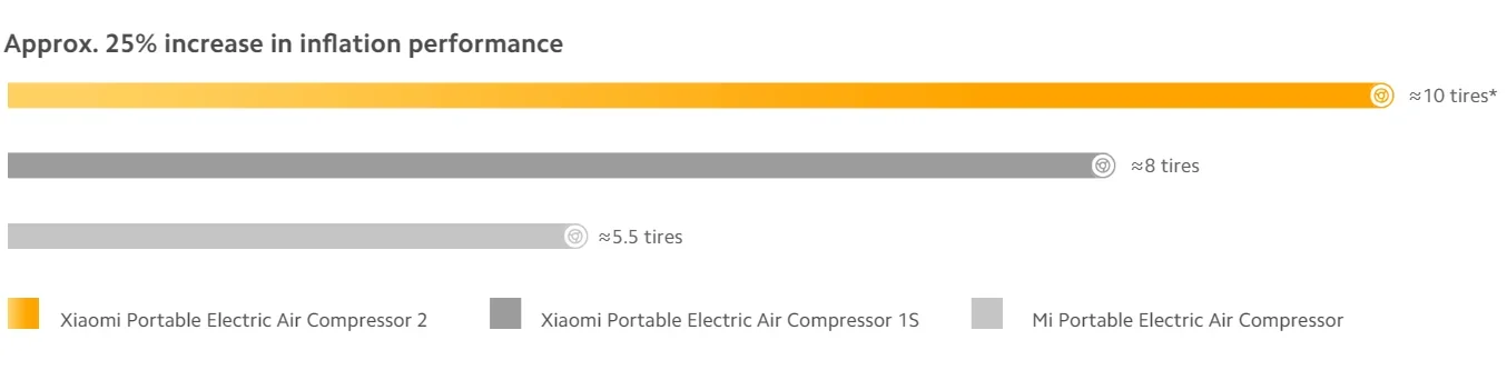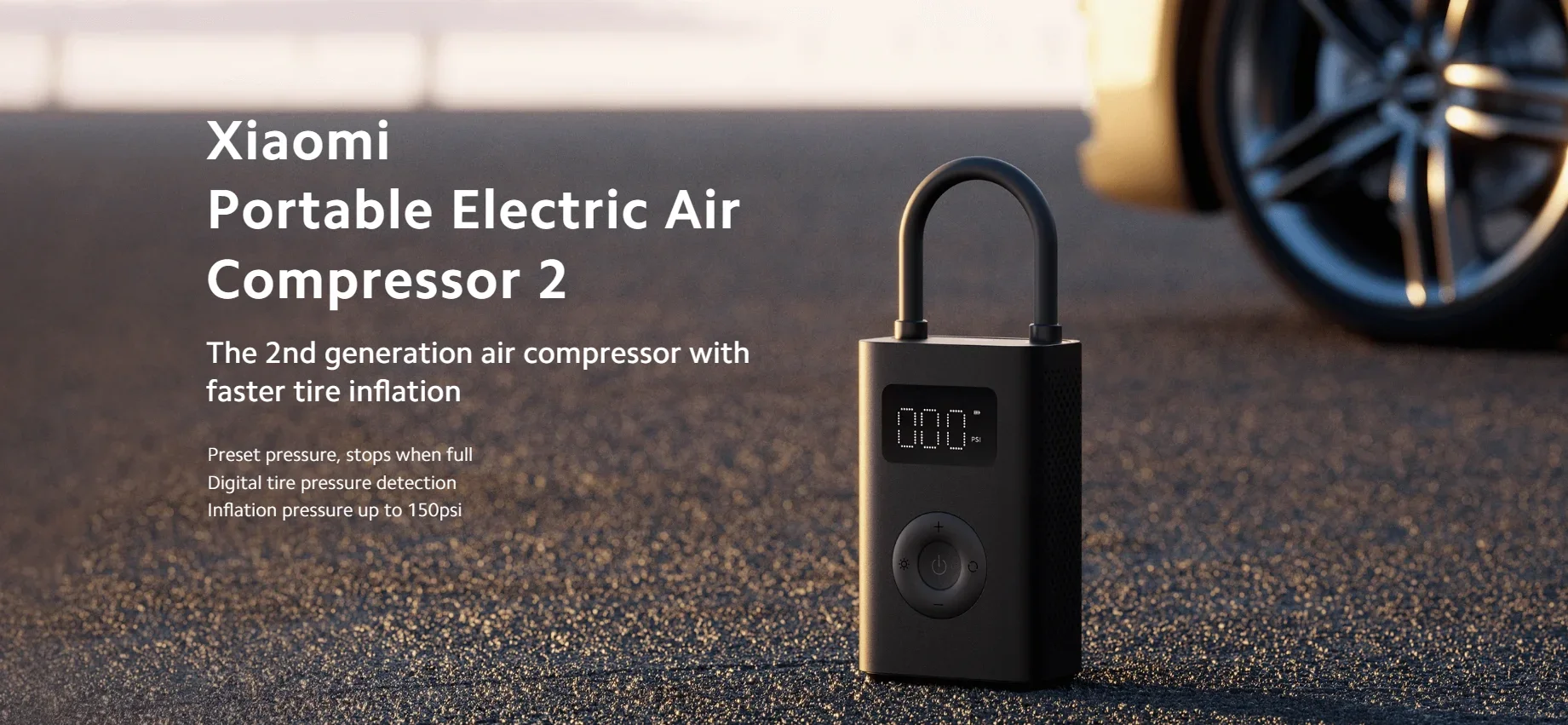 * El compresor de aire eléctrico portátil Mi tiene una precisión de ± 2psi en la detección de presión de los neumáticos; la precisión del compresor de aire eléctrico portátil Xiaomi 2 se ha actualizado a ± 1psi.