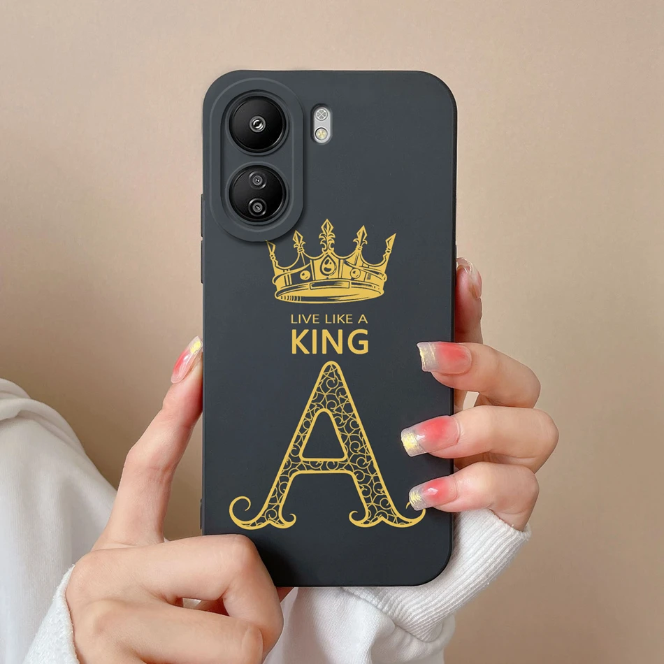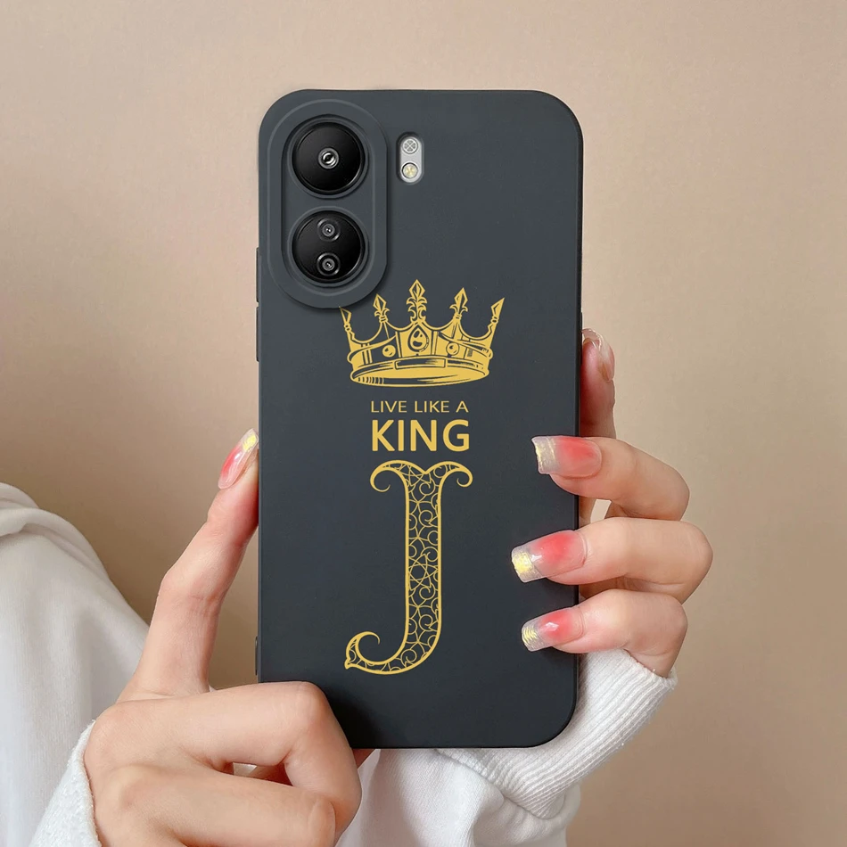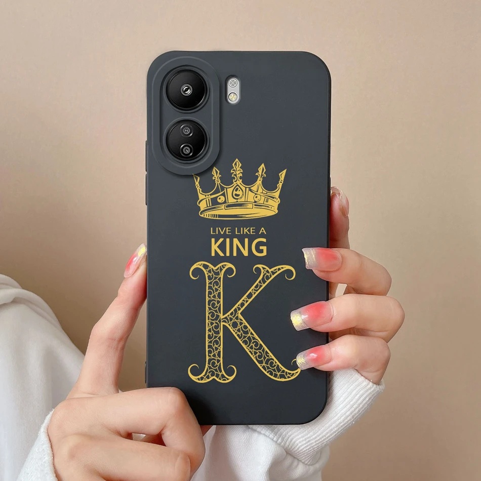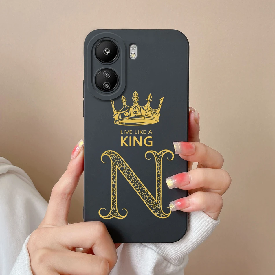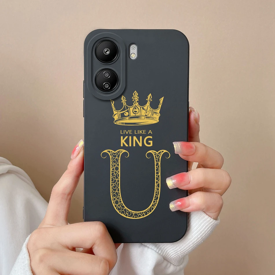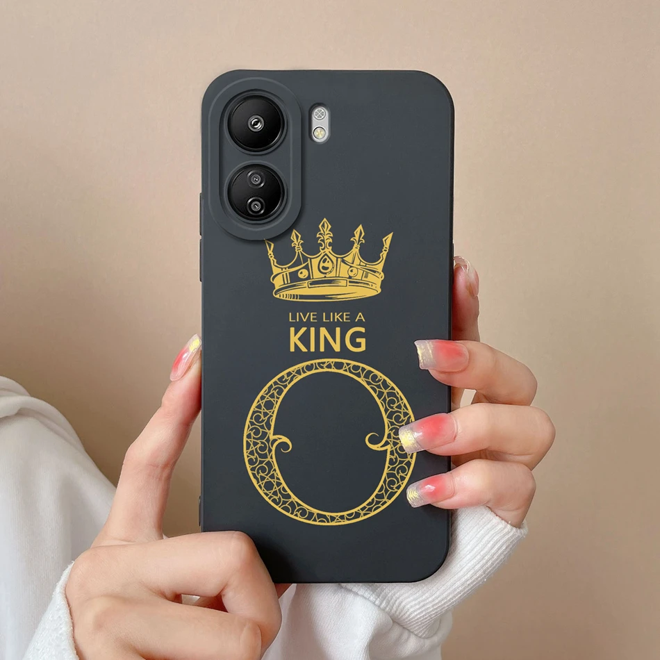 Para Xiaomi Poco C65 funda corona letra mejora cámara protección Coque suave líquido silicona blanco y negro funda de teléfono pareja Funda