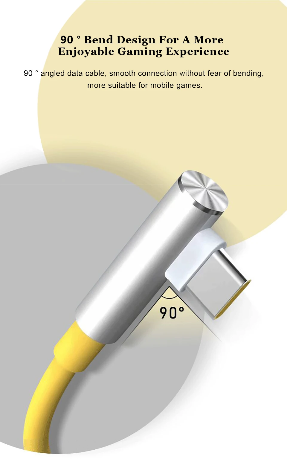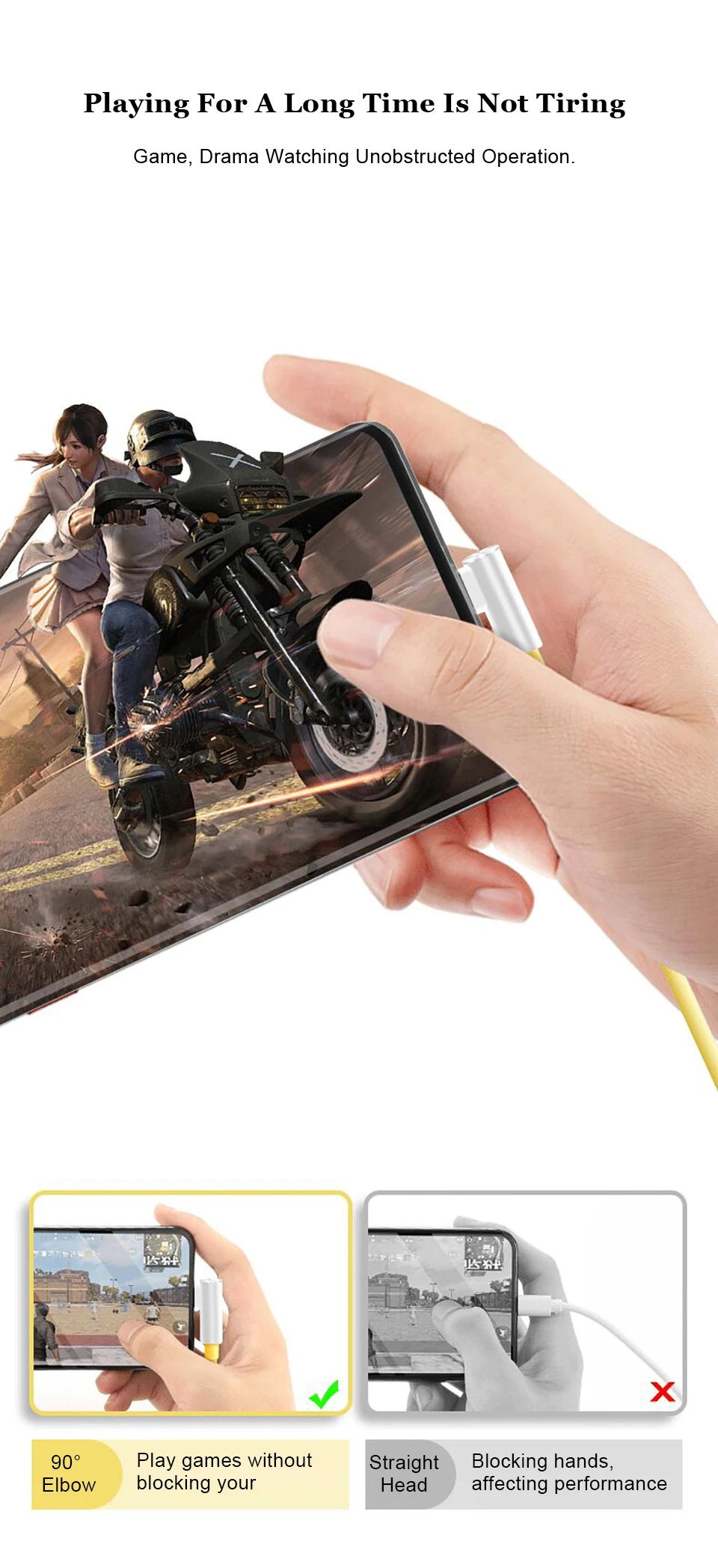 90° Cable de datos en ángulo, conexión suave sin temor a doblarse.más adecuado para juegos móviles.