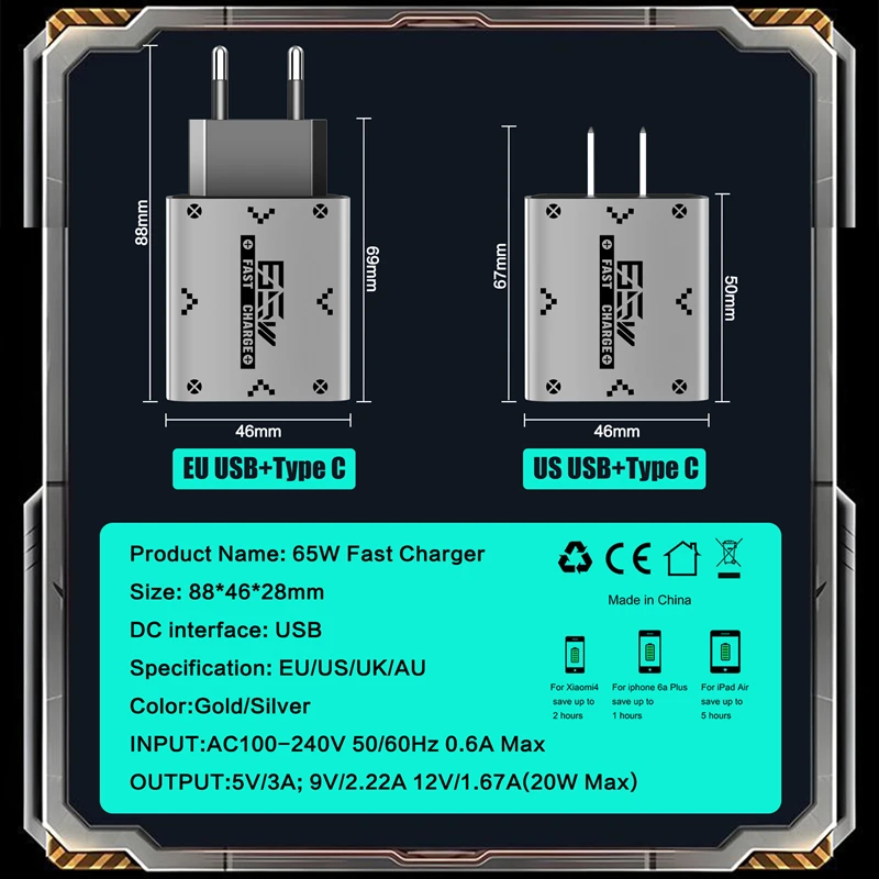 Este cargador está hecho de material ignífugo PC+ABS, que cumple con altos estándares de seguridad.Garantiza una experiencia de carga segura al evitar el sobrecalentamiento y reducir el riesgo de incendio.