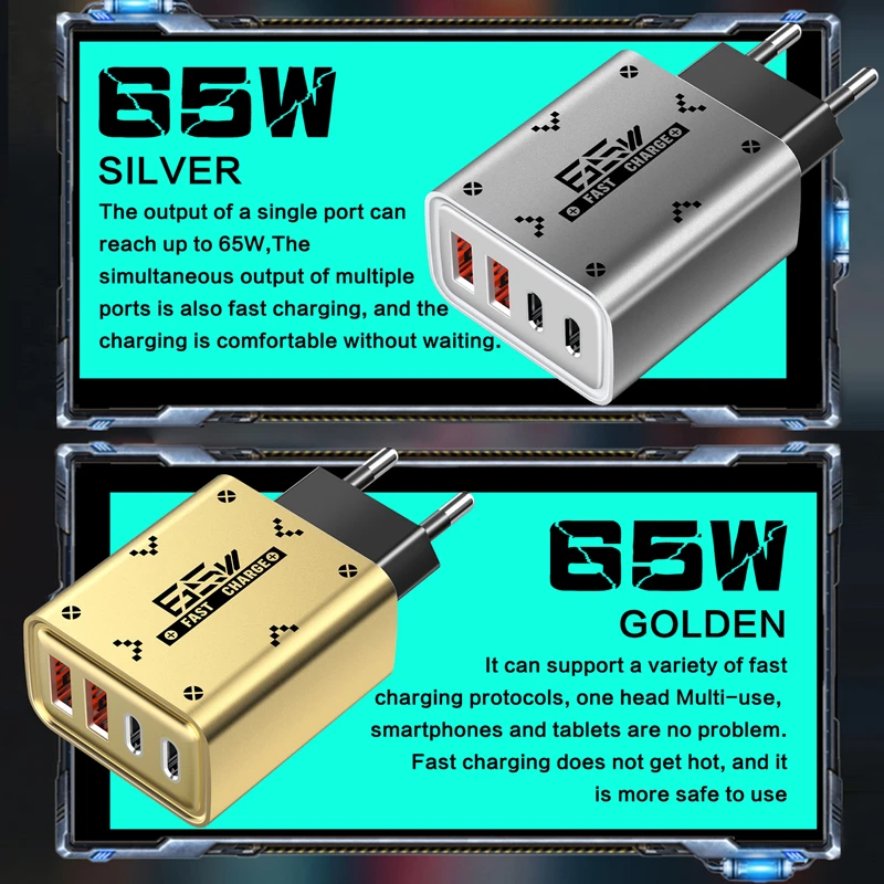 Comprar Xiaomi carga Ultra rápida 4 puertos PD USB cargador de teléfonos móviles 65W tipo C adaptador de pared para iPhone Samsung Huawei enchufe UE/EE. UU./Reino Unido
