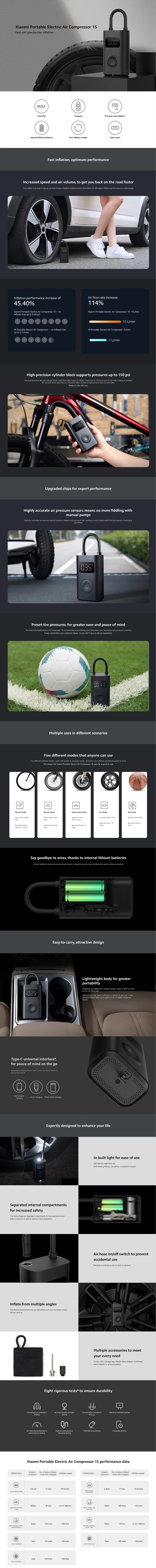 Comprar Xiaomi-compresor de aire eléctrico portátil Original, bomba de aire Digital con Sensor de monitoreo de presión de neumáticos, inflador para coche y fútbol