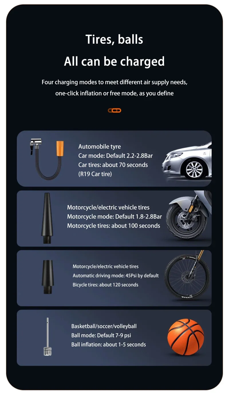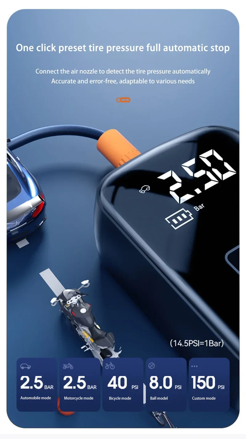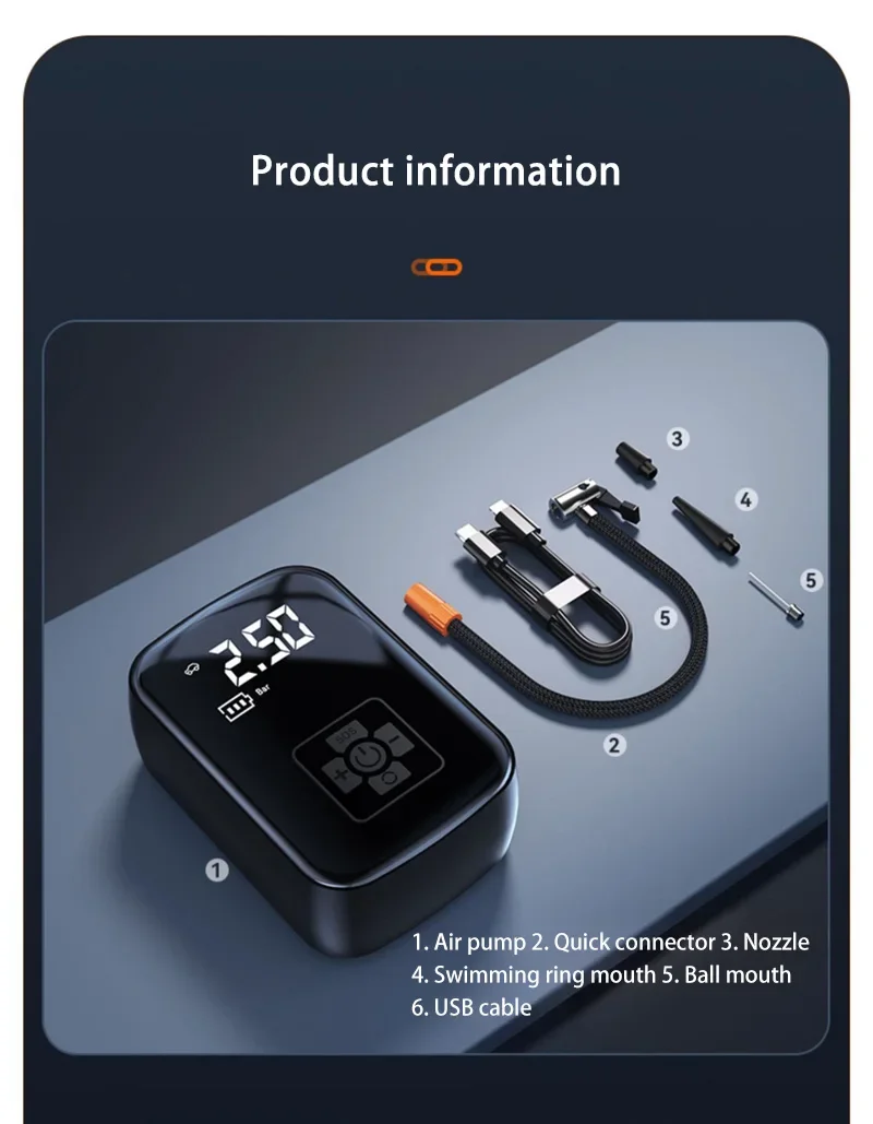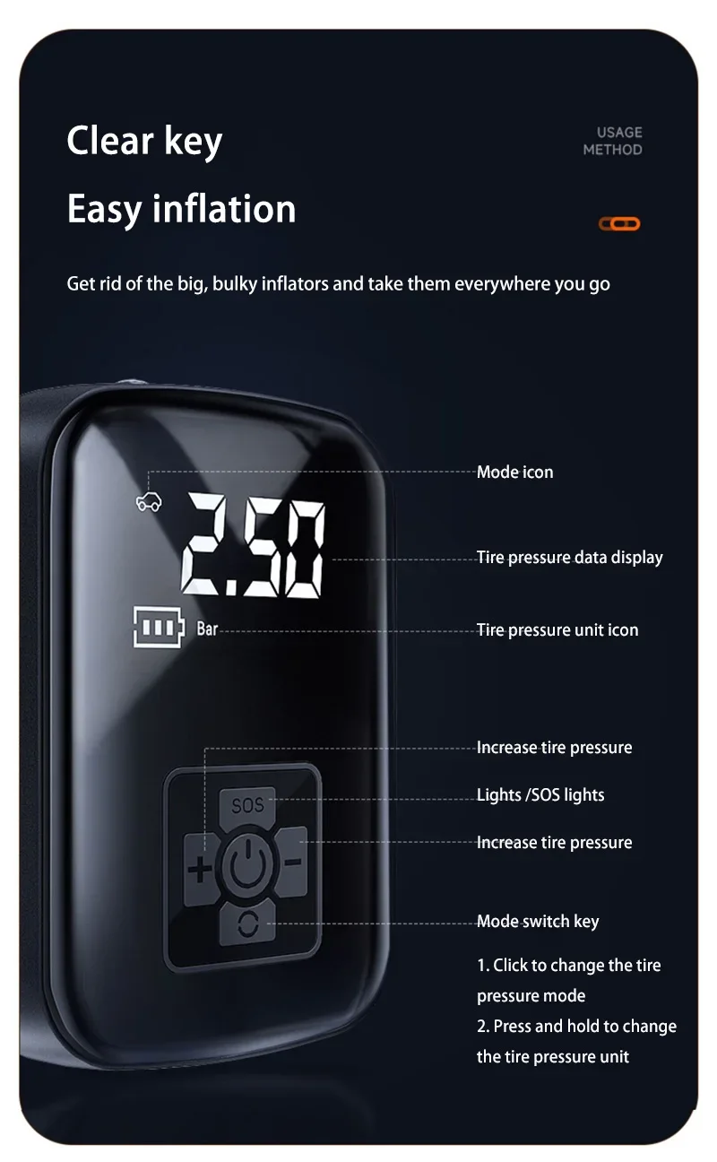 • Inalámbrico y conveniente: no necesita cables ni cables, este compresor de aire es fácil de usar y se puede llevar a cualquier parte.
