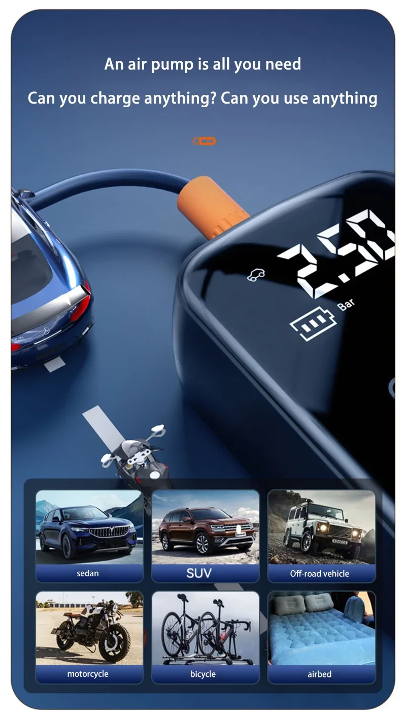 • Versátil: Adecuado para usar con automóviles, motocicletas, bicicletas, botes e incluso pelotas deportivas.