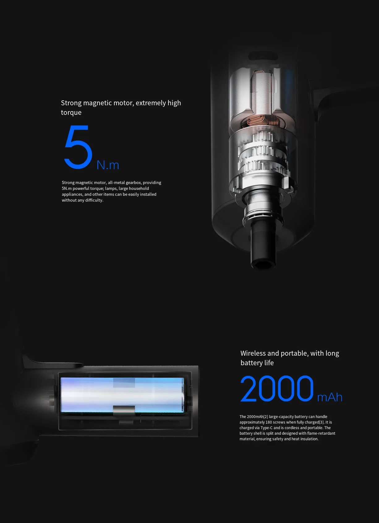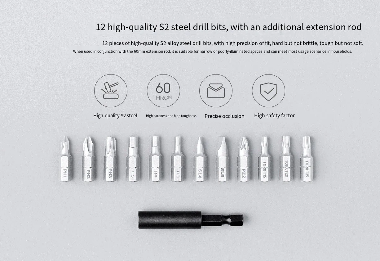 • Potente par: con un par de 5 N.M, el destornillador eléctrico Mijia garantiza un destornillador rápido y eficiente, haciendo que sus tareas domésticas sean más fáciles y rápidas.