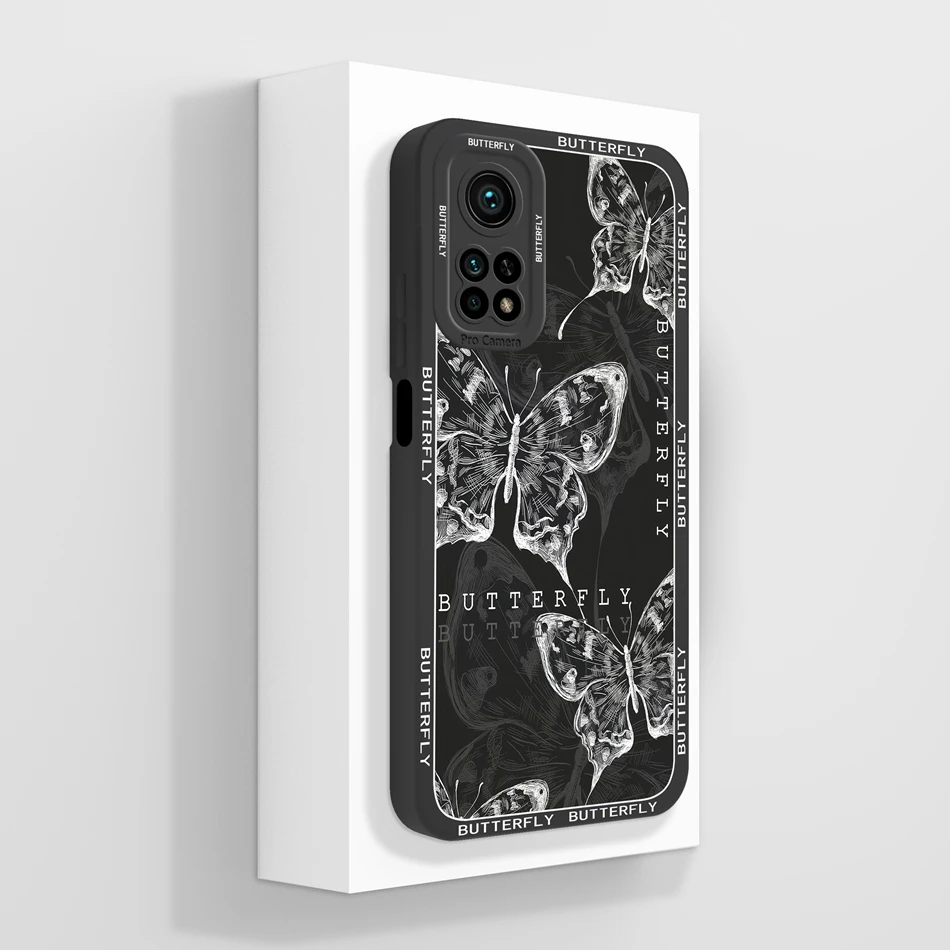 Comprar Para Xiaomi Mi 10T Pro Lite 5G funda negra mariposa protección completa cubierta trasera de silicona líquida para Xiaomi Mi 10 T Mi10T parachoques