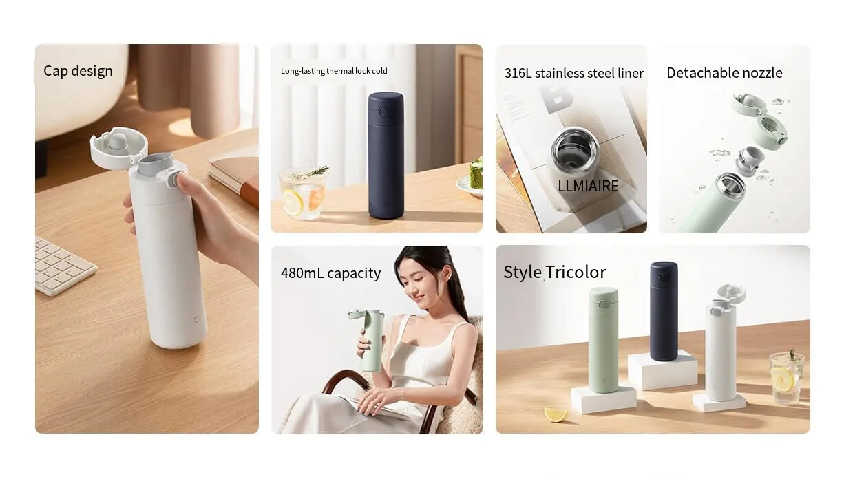Xiaomi Mijia-botella termo inteligente, taza de 3, 480ML para mantener el calor/agua fría, regalo de cumpleaños para niño, niña, amiga, mujer, taza de vacío de viaje