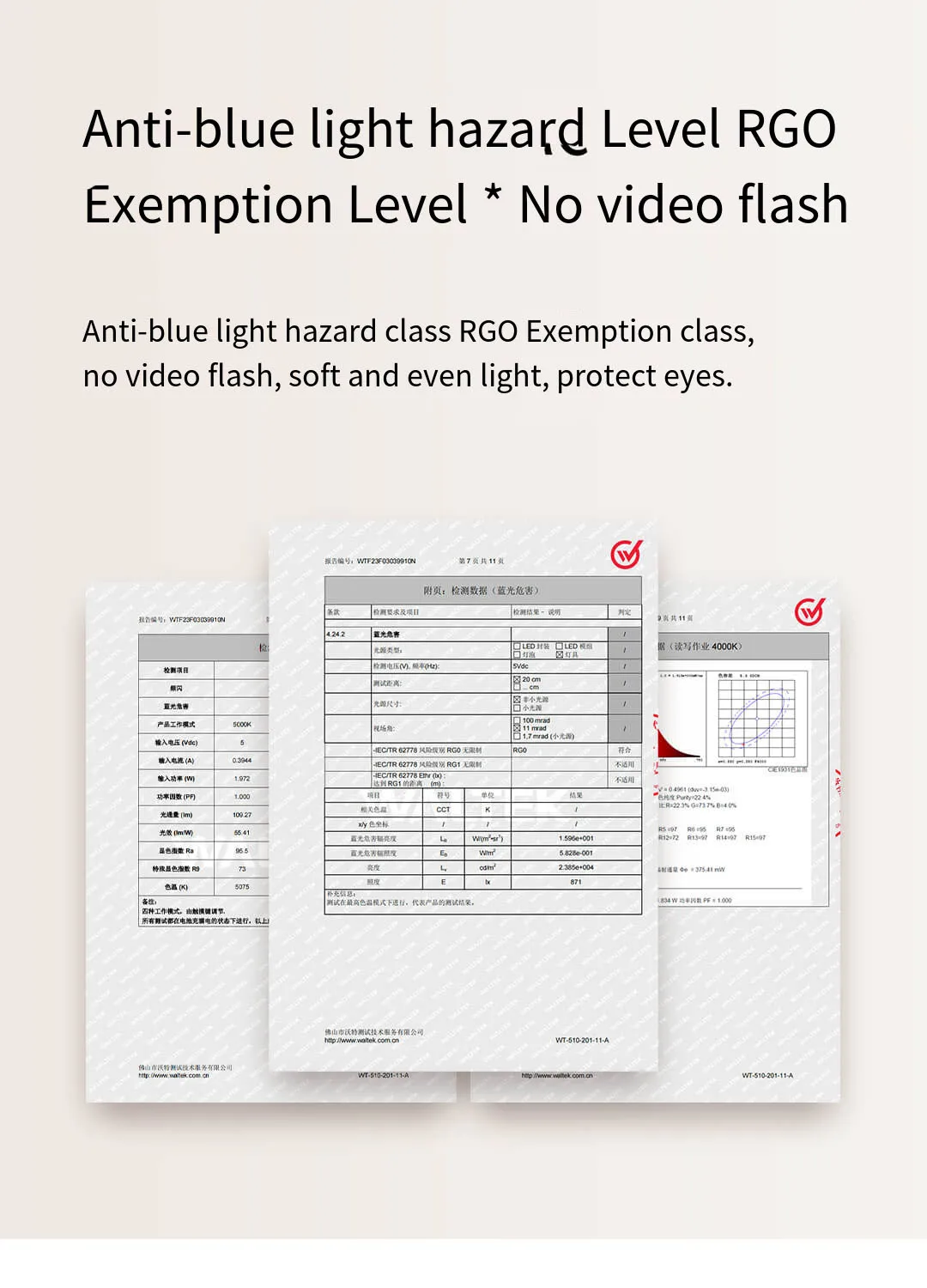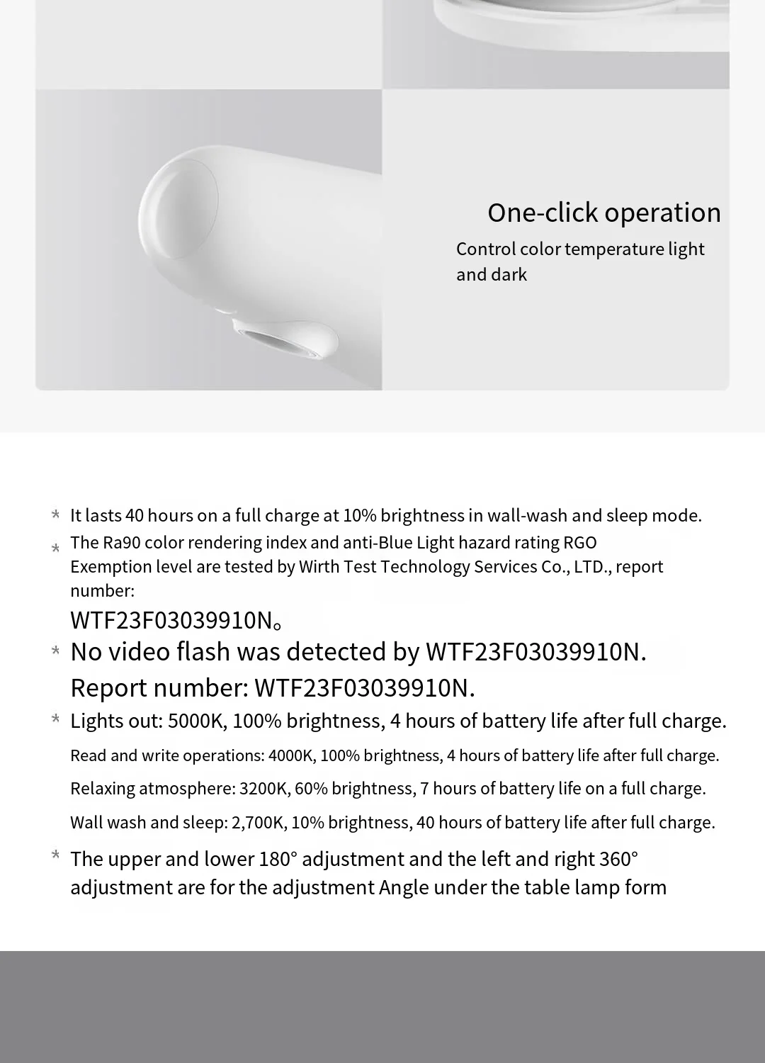 Luminous flux: 100lm (4000K, 5000K), 60lm (3200K), 10lm (2700K)