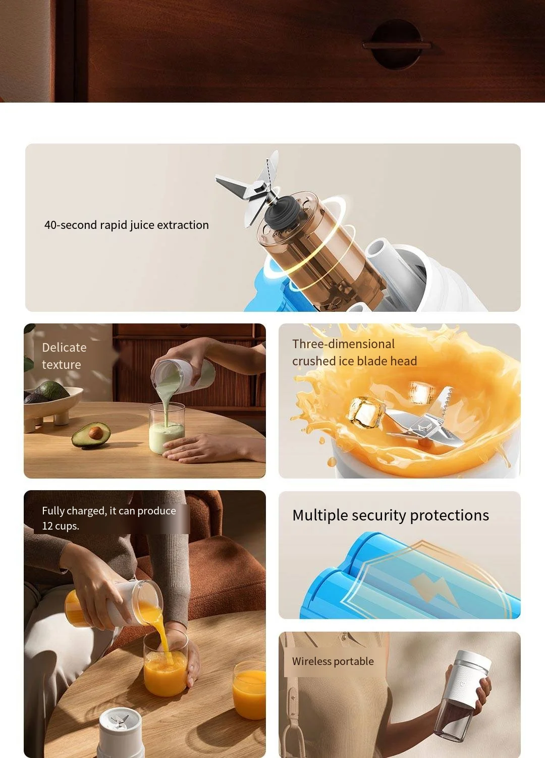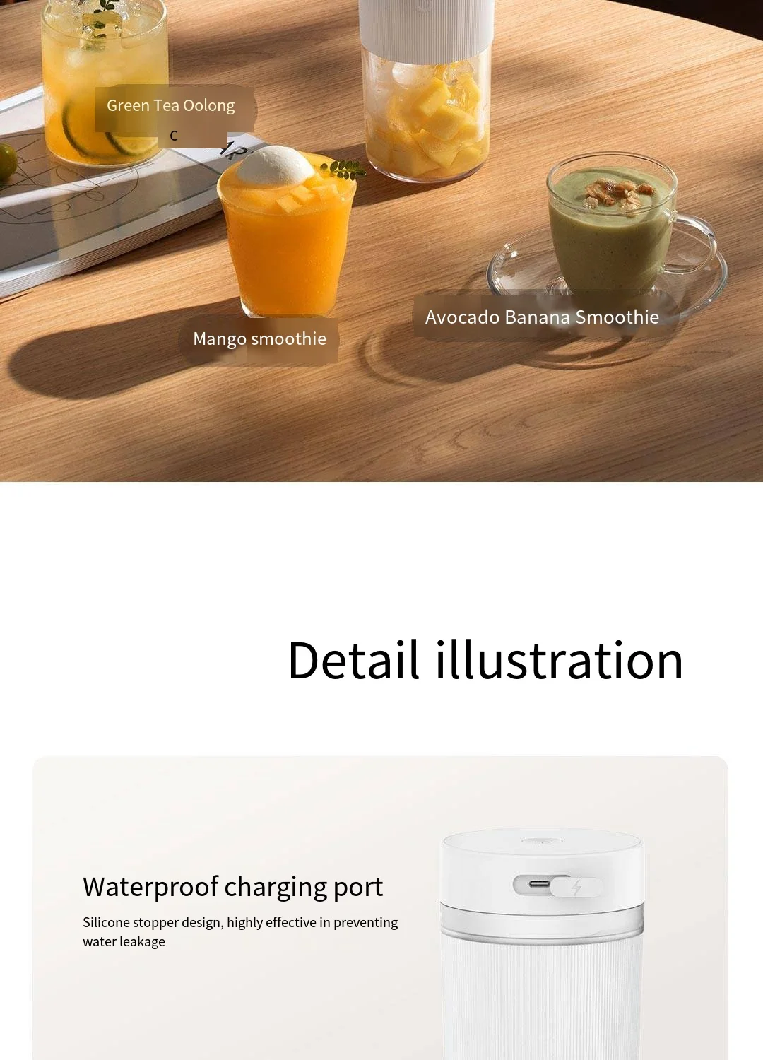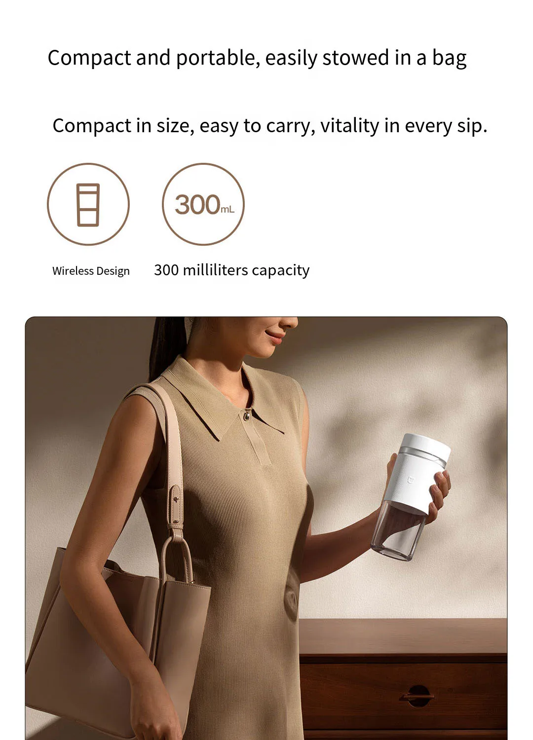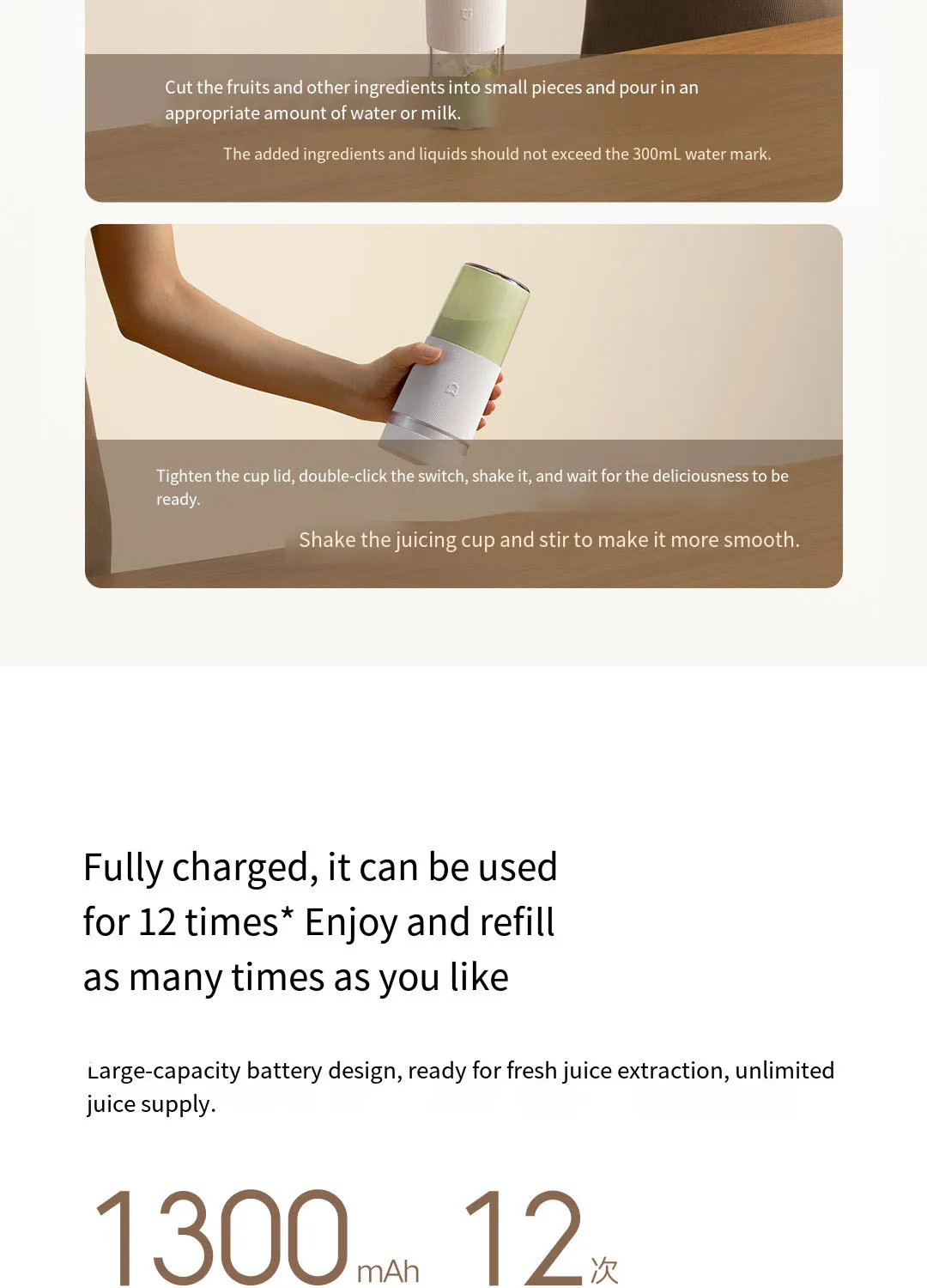 * Ligero y portátil: diseño inalámbrico, compacto y liviano, capacidad de 300 ml, disfrute de jugo fresco en cualquier momento y en cualquier lugar.