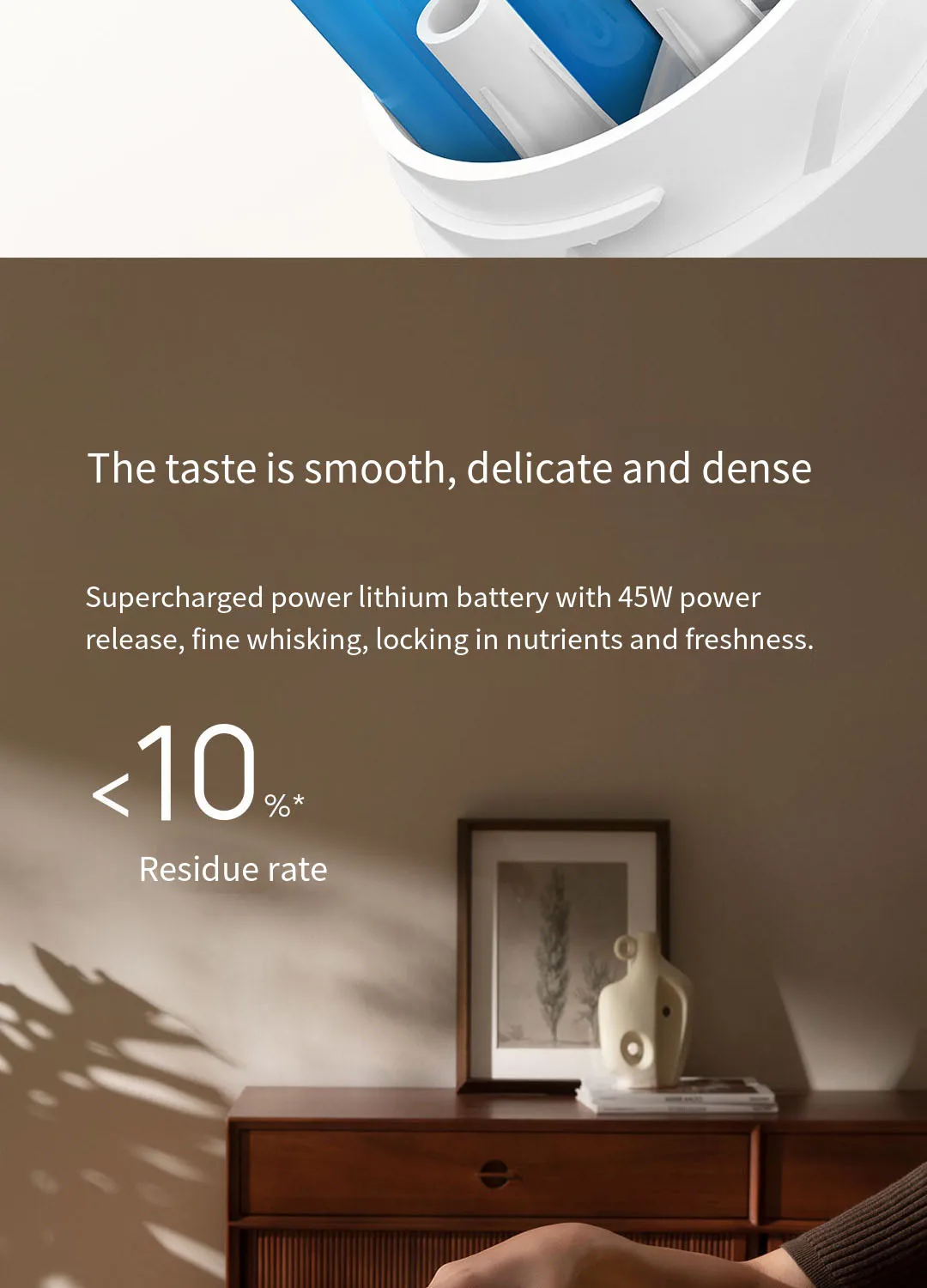 * Textura fina: impulsado por una batería de litio de alto voltaje, 45 W de potencia, ingredientes completamente mezclados y la tasa de residuos es inferior al 10%.
