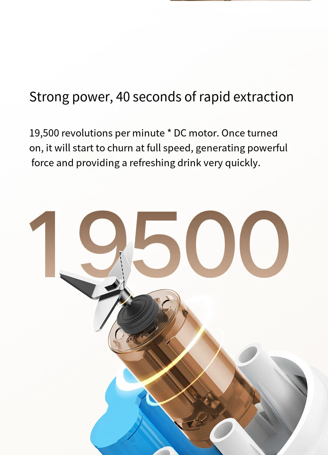 * Exprimido rápido: con un motor de CC de 19500 RPM, el expresión se puede completar en 40 segundos.
