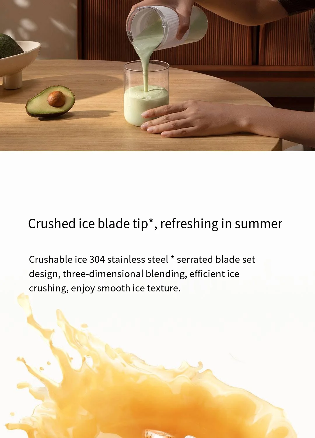 * Función de trituración de hielo: diseño de hoja dentada de acero inoxidable 304, fácil de triturar hielo en verano, brindando una experiencia de bebida helada suave.