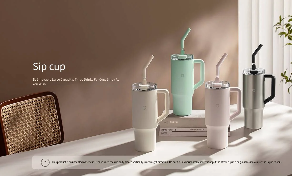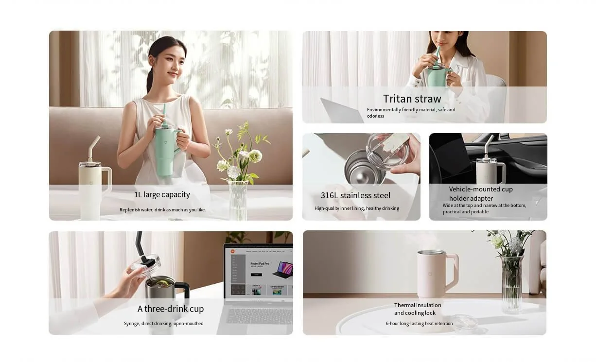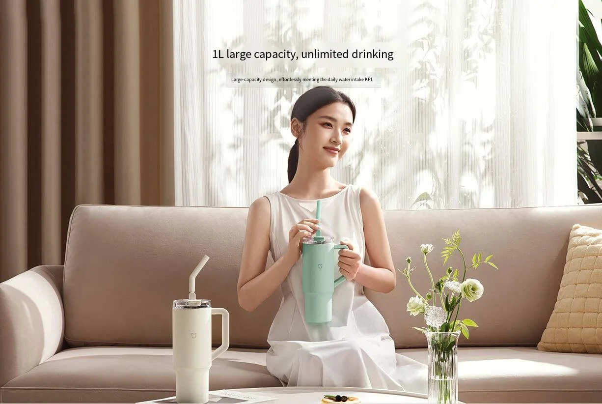 Comprar Xiaomi Mijia-taza con pajita inteligente, 1L, alta capacidad, acero inoxidable 316L, fuerte conservación del frío, aislamiento, grado de contacto alimentaria