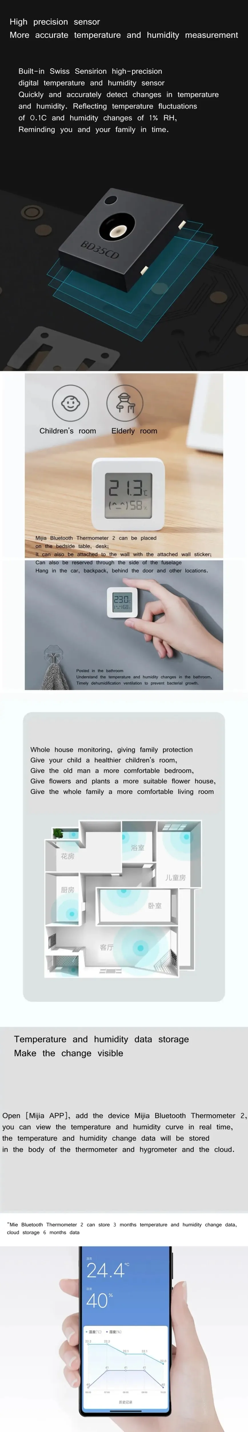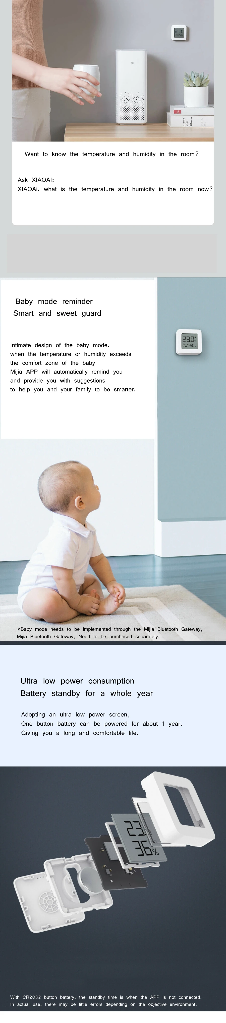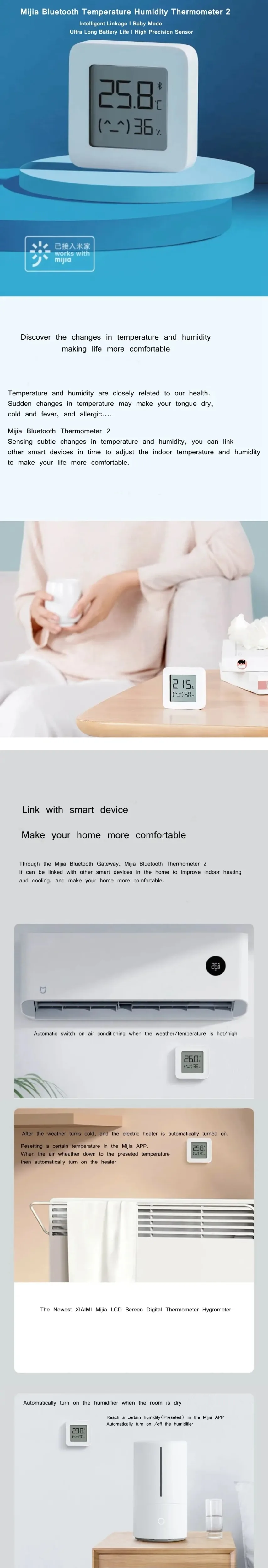 6. A través de la aplicación Mi para encender el humidificador cuando la humedad interior es demasiado baja y el aire acondicionado cuando la temperatura interior es demasiado alta. Pantalla digital LED, puede obtener temperatura, humedad fácilmente