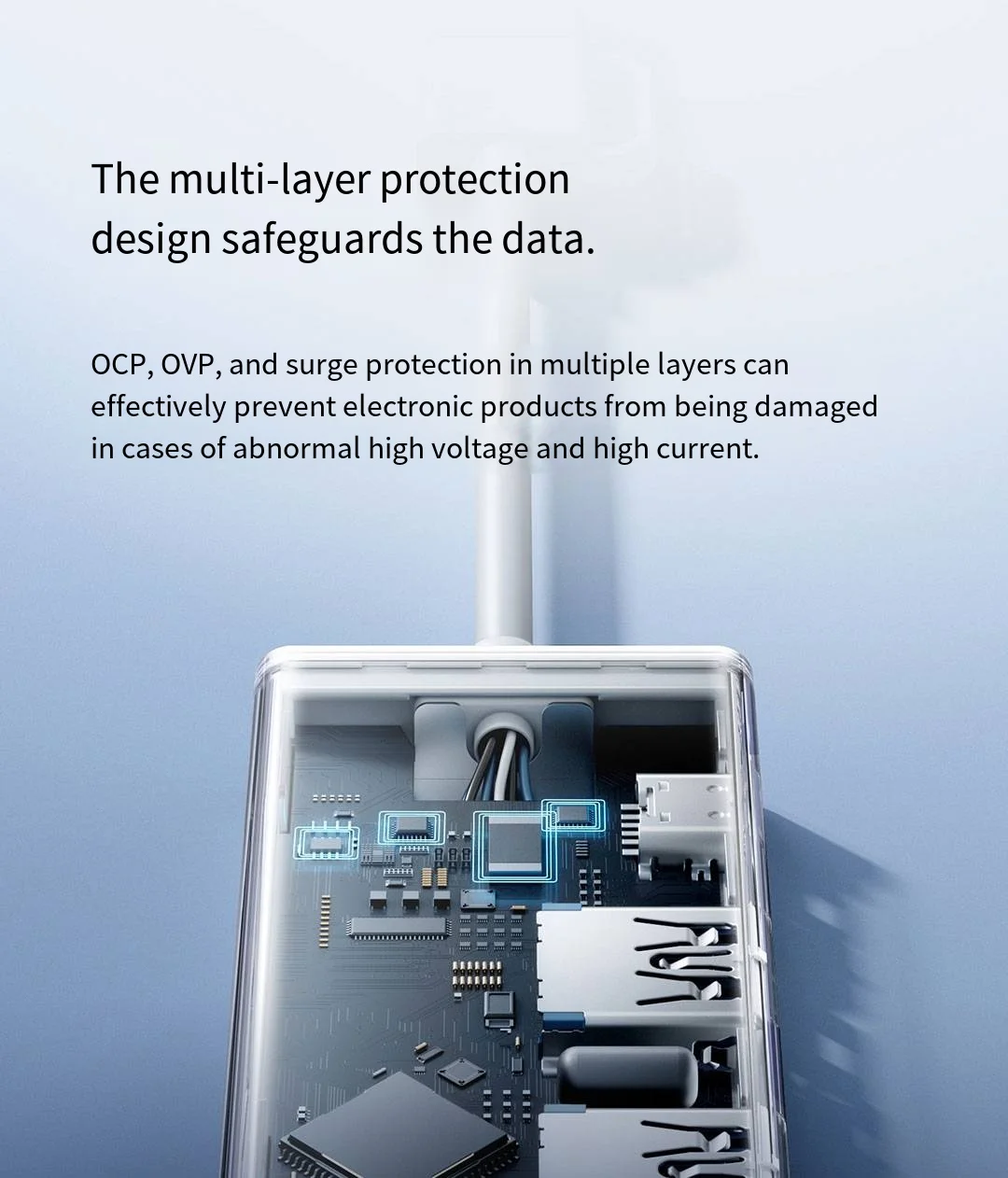 * La protección multicapa, el OCP, el OVP y la protección contra sobretensiones garantizan la seguridad del dispositivo.