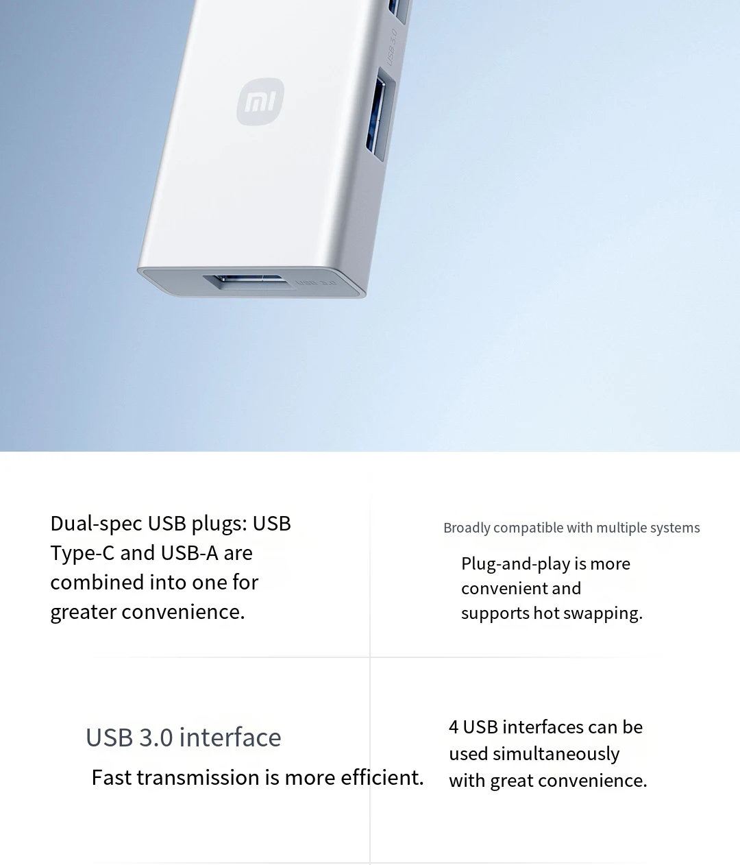 Características principales del divisor de cable de doble cabezal cuatro en uno XIAOMI MIJIA