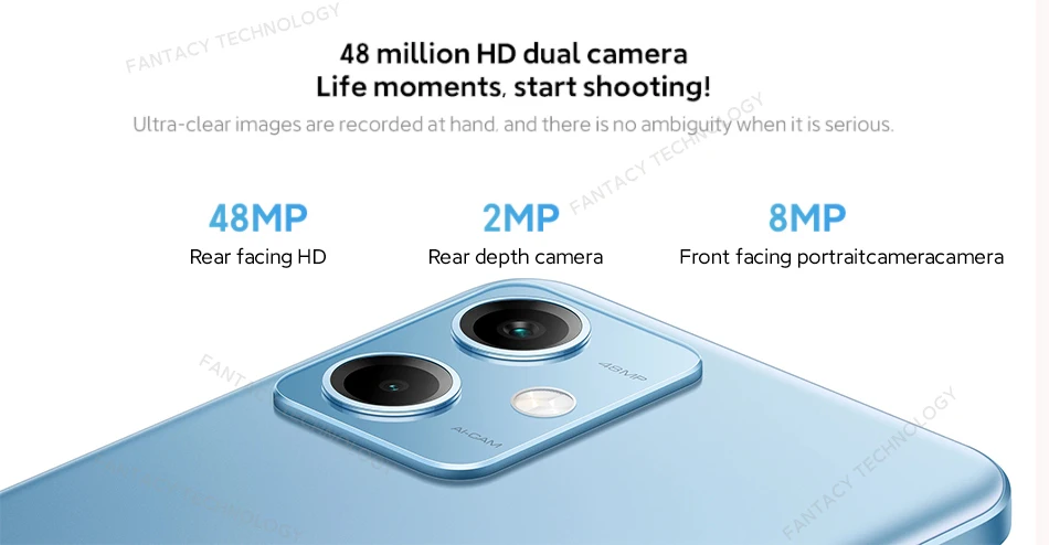 CámaraCámara trasera dual -------------------- 48MP + 2MP, cámara frontal 8MP