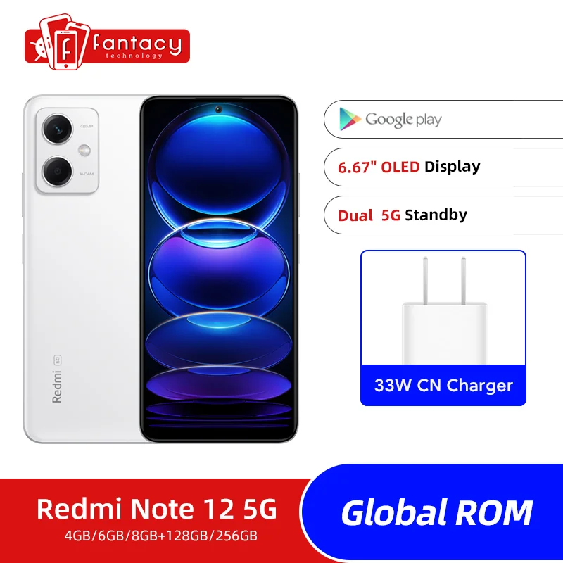 Comprar Xiaomi-móvil Redmi Note 12, ROM Global, 5G, 128GB/256GB, pantalla OLED de 6,67 pulgadas, 120Hz, Snapdragon 4 Gen 1, 5000mAh, 48MP, versión CN