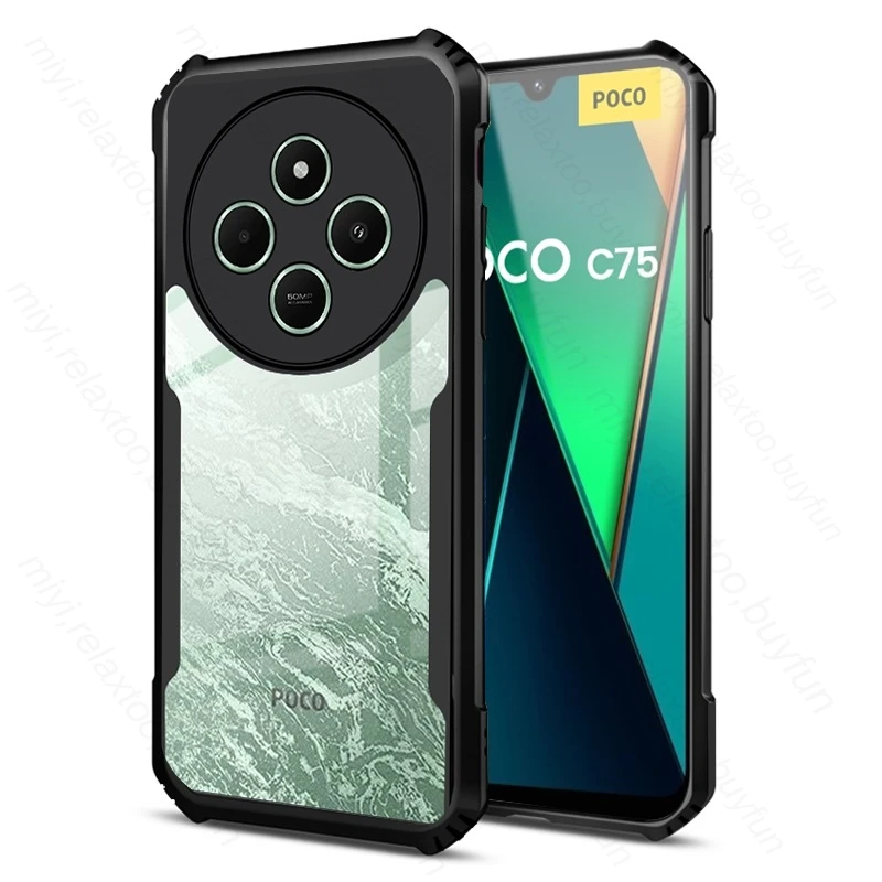 Para Xiaomi Poco C75 4G funda acrílica transparente a prueba de golpes armadura cubierta en Poko Little PocoC75 C 75C NFC cámara proteger Fundas