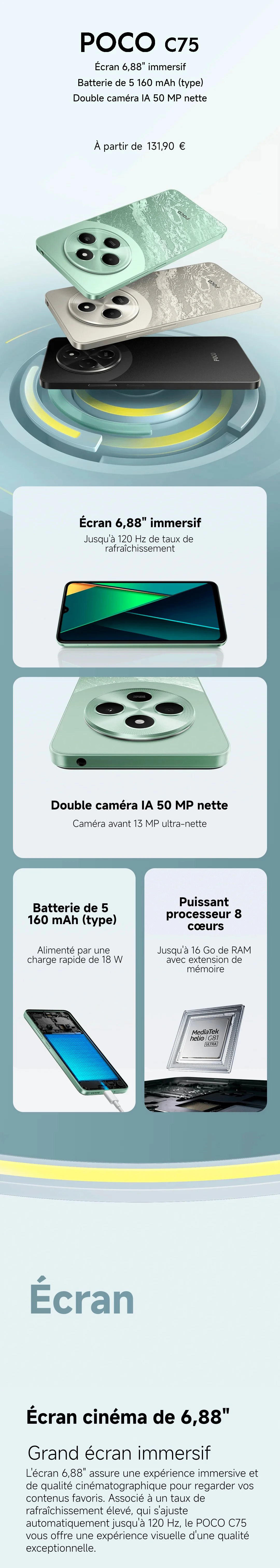 Comprar Xiaomi POCO C75 Versión Europea 128GB/256GB Helio G81-Ultra Triple CÁMARA DE 6,88 pulgadas, 120Hz, Batería 5160mAh NFC