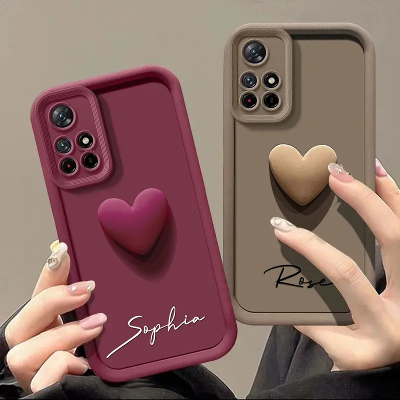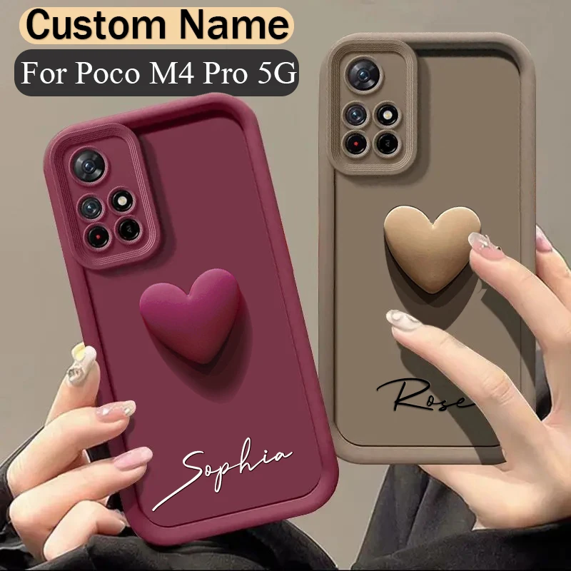 Para Xiaomi Poco M4 Pro 5G funda con nombre personalizado 3D amor corazón caramelo cubierta de parachoques Xiaomi PocoM4 Pro 5G
