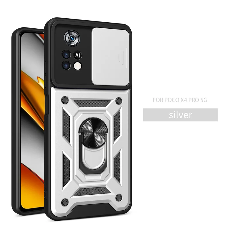 Comprar Para Xiaomi Poco X4 Pro 5G NFC funda con soporte para coche lente de cámara protección armadura funda de teléfono para PocoX4Pro Poko Little X 4 Pro contraportada