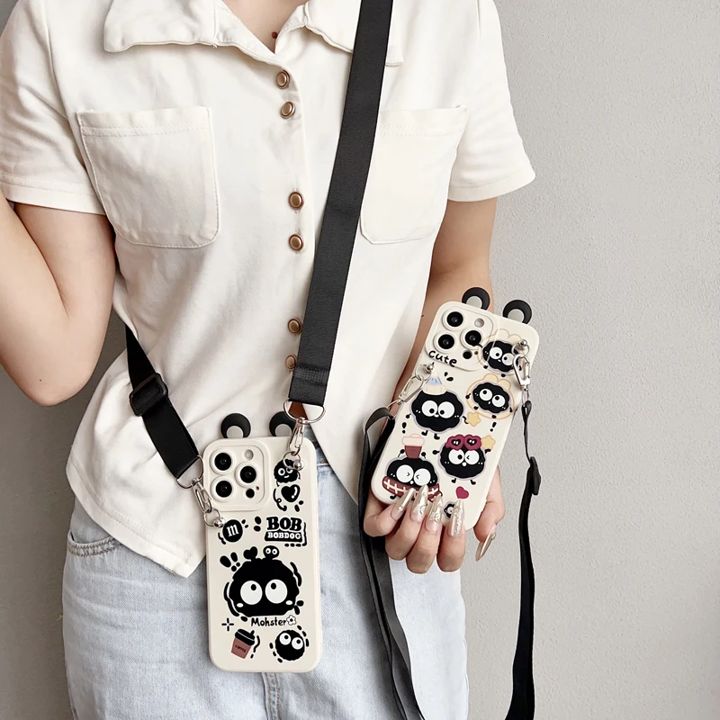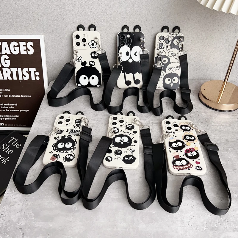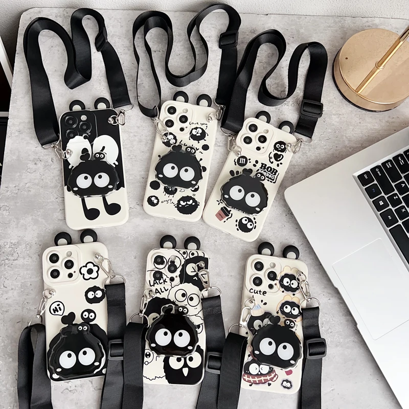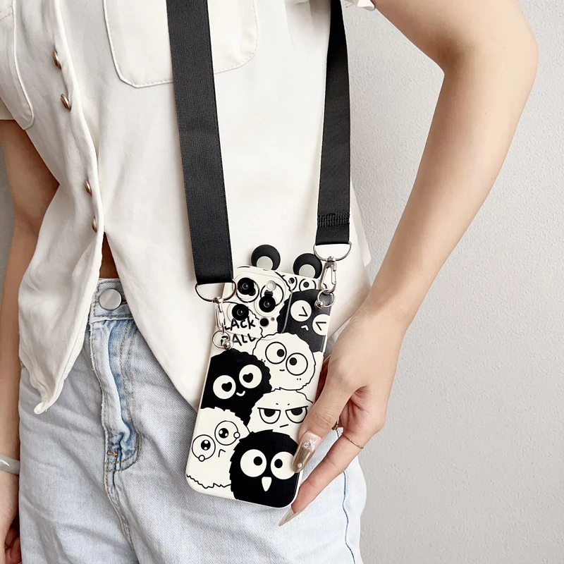Comprar Para Xiaomi Redmi 10A 12 13 10C 12C 13C 14C 5A Note 11 12 13 14 S Pro funda de bolas de carbón negro con cuerda de soporte