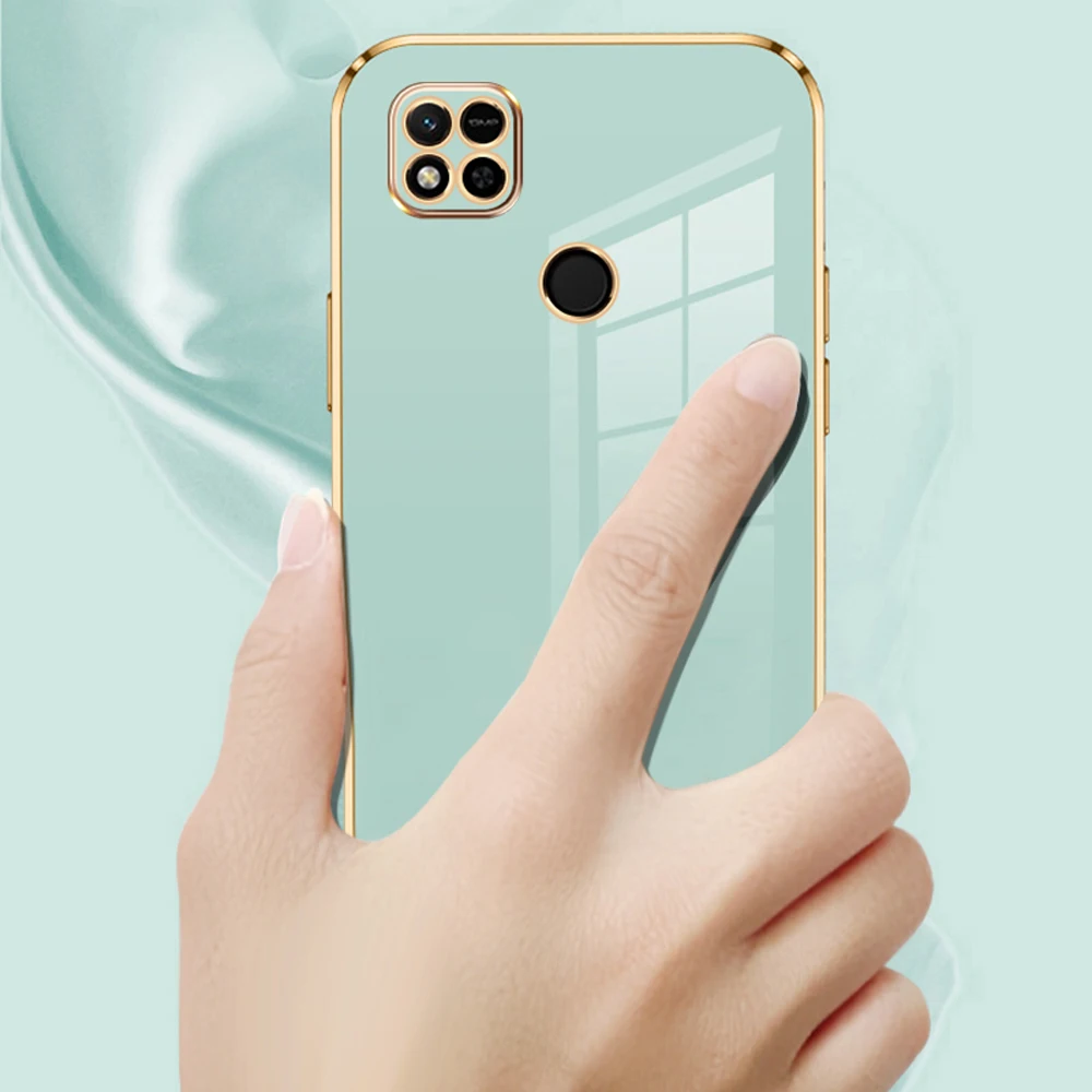Comprar Para Xiaomi Redmi 10A funda de lujo chapada cuadrada Redmi 9C funda de teléfono Redmi 9C NFC 10A silicona a prueba de golpes M2006C3MNG contraportada