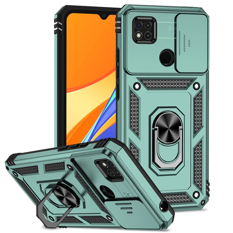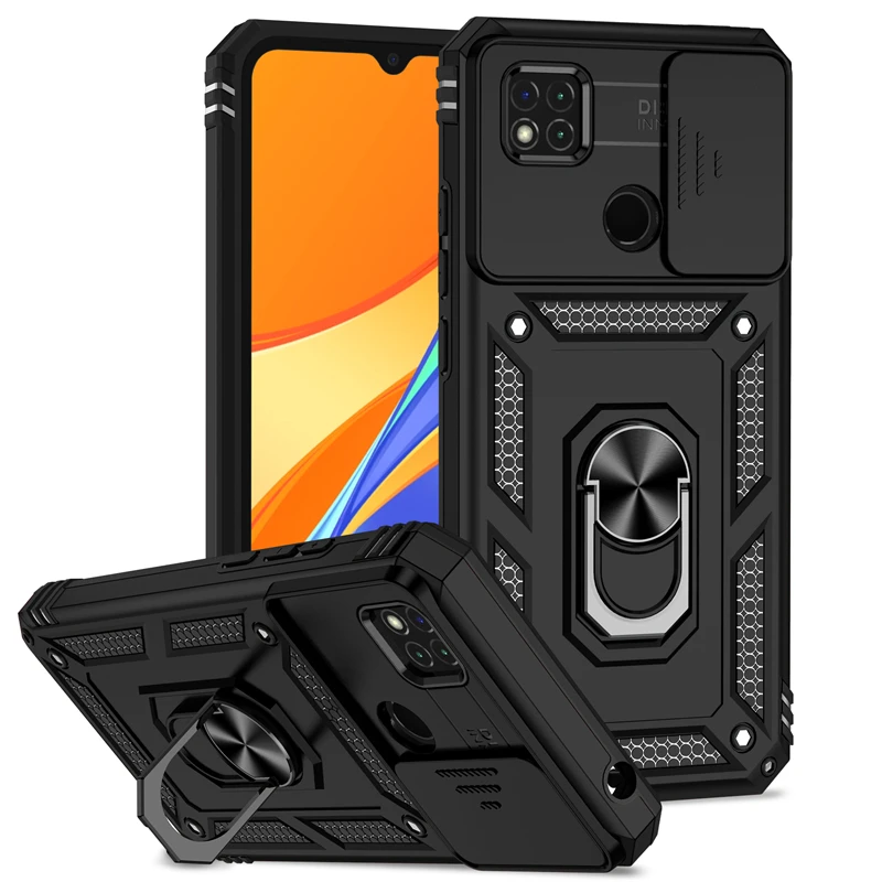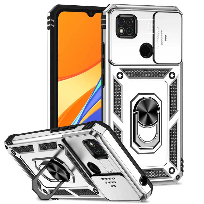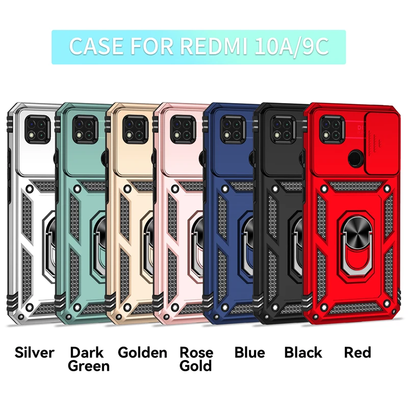 Comprar Para Xiaomi Redmi 10A funda protectora para cámara deslizante funda de teléfono para Redmi10A 10 A A10 soporte de anillo magnético armadura cubierta trasera a prueba de golpes