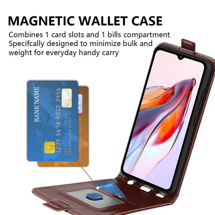 Para Xiaomi Redmi 12C funda de cuero con tapa para Xiaomi Redmi 12C Funda de cuero tipo billetera Vertical de alta calidad
