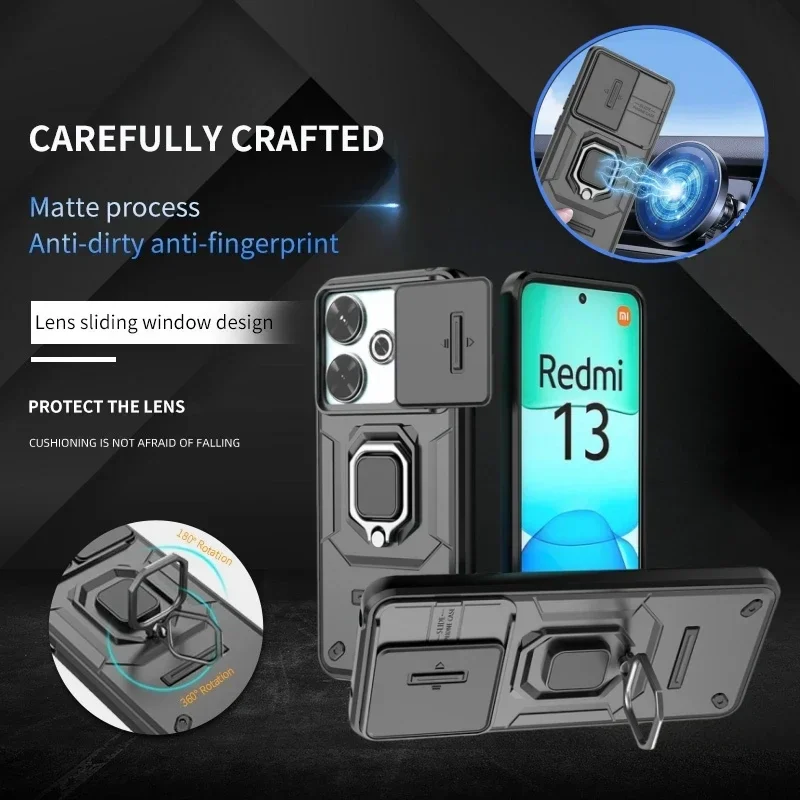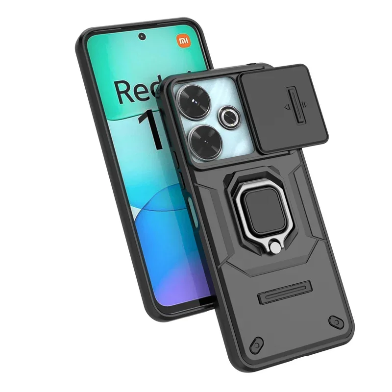Comprar Para Xiaomi Redmi 13 4G funda protectora para cámara deslizante armadura funda de teléfono para Poco M6 PocoM6 M 6 4G cubierta de anillo de soporte magnético Redmi13
