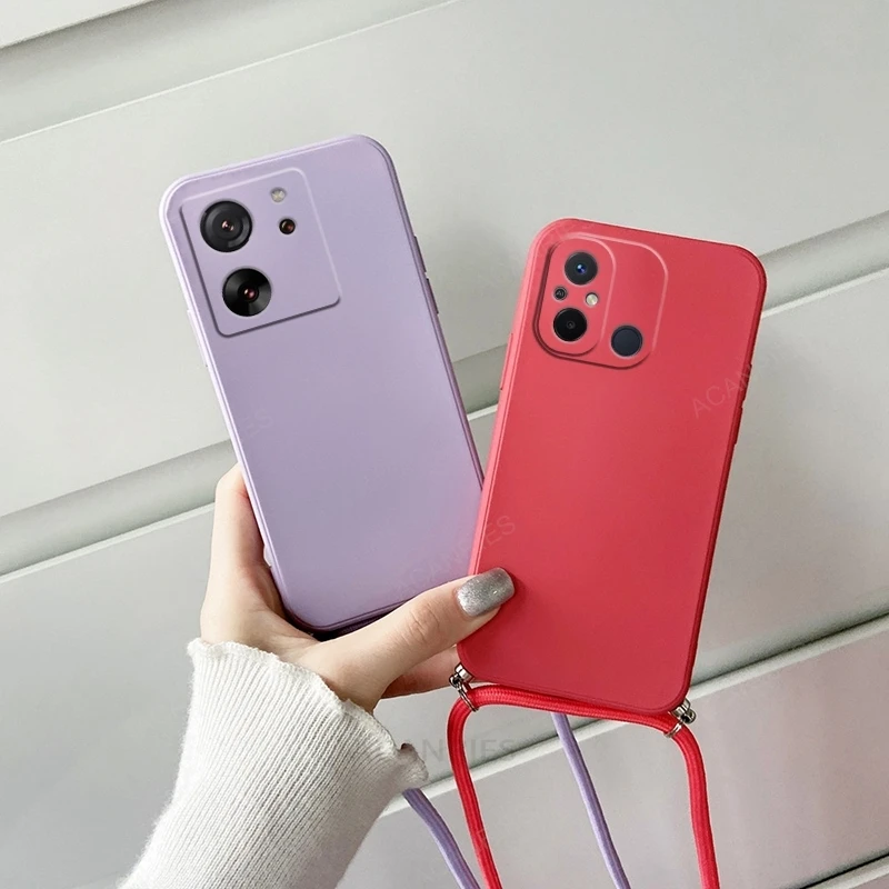 Para Xiaomi Redmi 13C 12C 10C 9C Nfc A2 A1 Plus collar cruzado correa cordón funda de silicona líquida en Redmi13c Redmi12c
