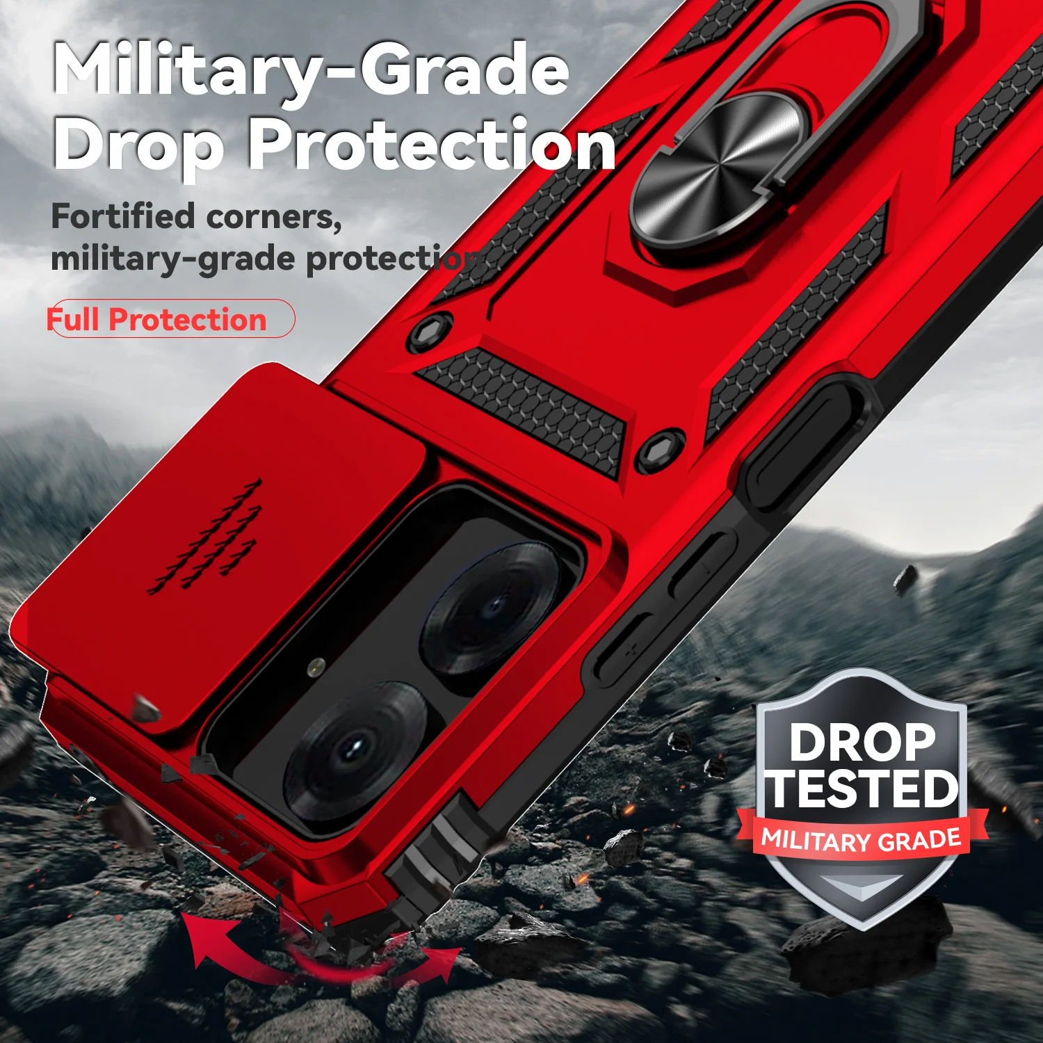Comprar Para Xiaomi Redmi 13C funda lateral lente de cámara a prueba de golpes funda armadura para Redmi13C 13 C soporte magnético de coche cubierta de anillo Poco C65 C 65