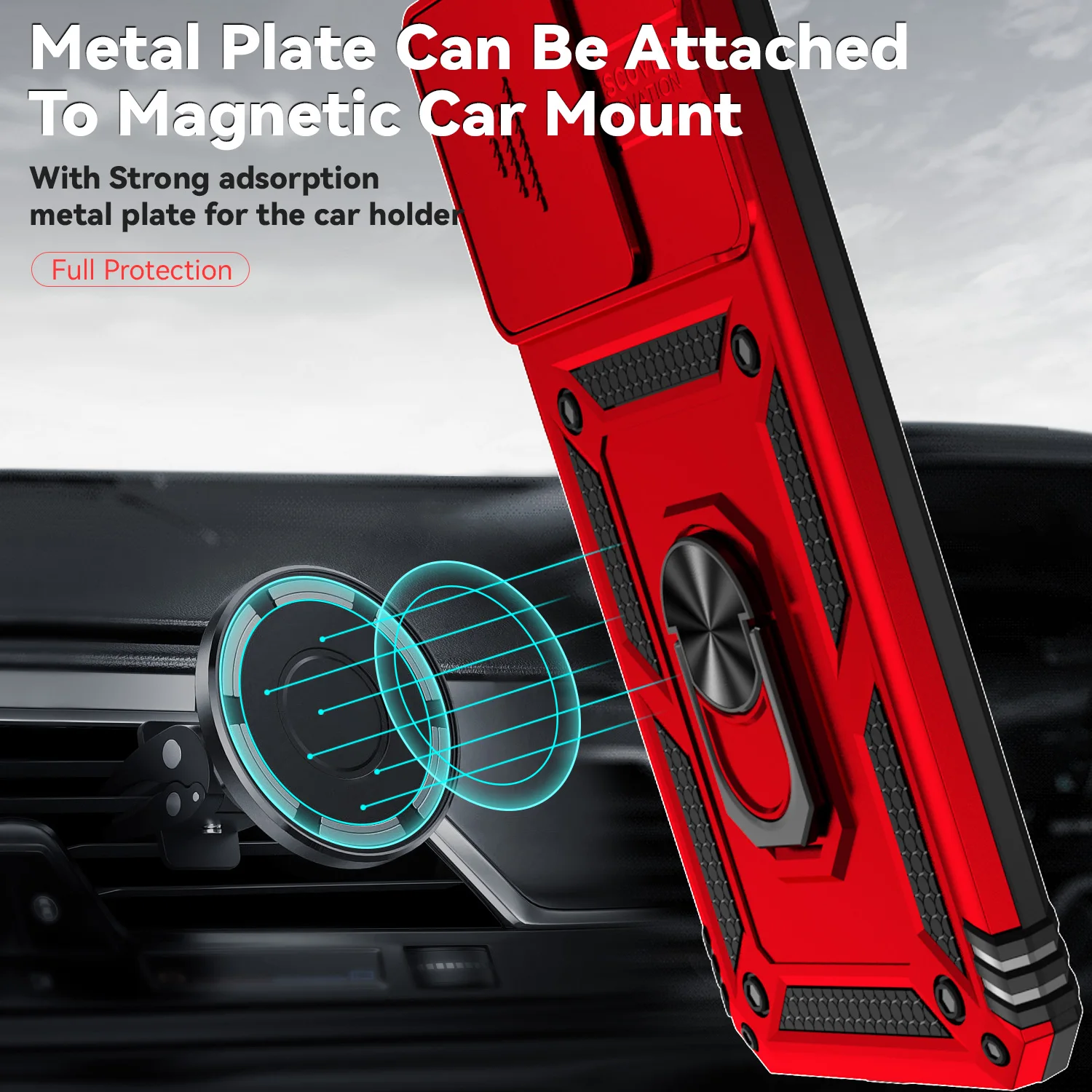 Para Xiaomi Redmi 13C funda lateral lente de cámara a prueba de golpes funda armadura para Redmi13C 13 C soporte magnético de coche cubierta de anillo Poco C65 C 65