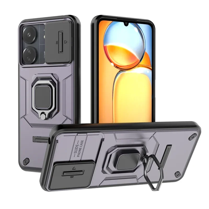 Para Xiaomi Redmi 13C funda protectora para cámara deslizante armadura funda de teléfono para Poco C65 PocoC65 C 65 cubierta de anillo de soporte magnético Redmi13C 13 C