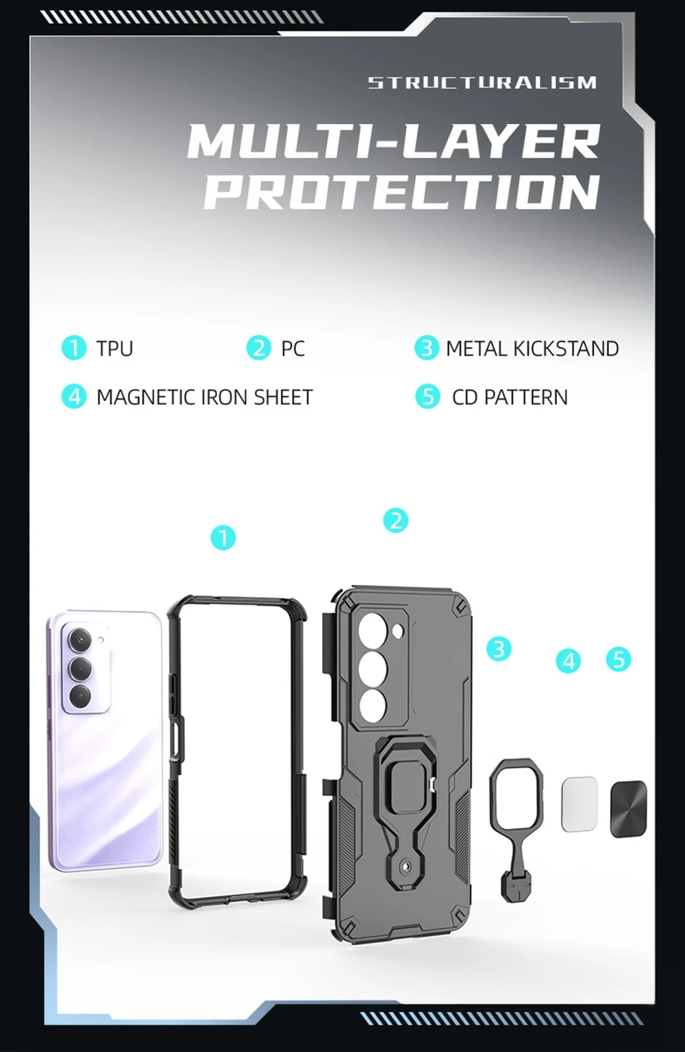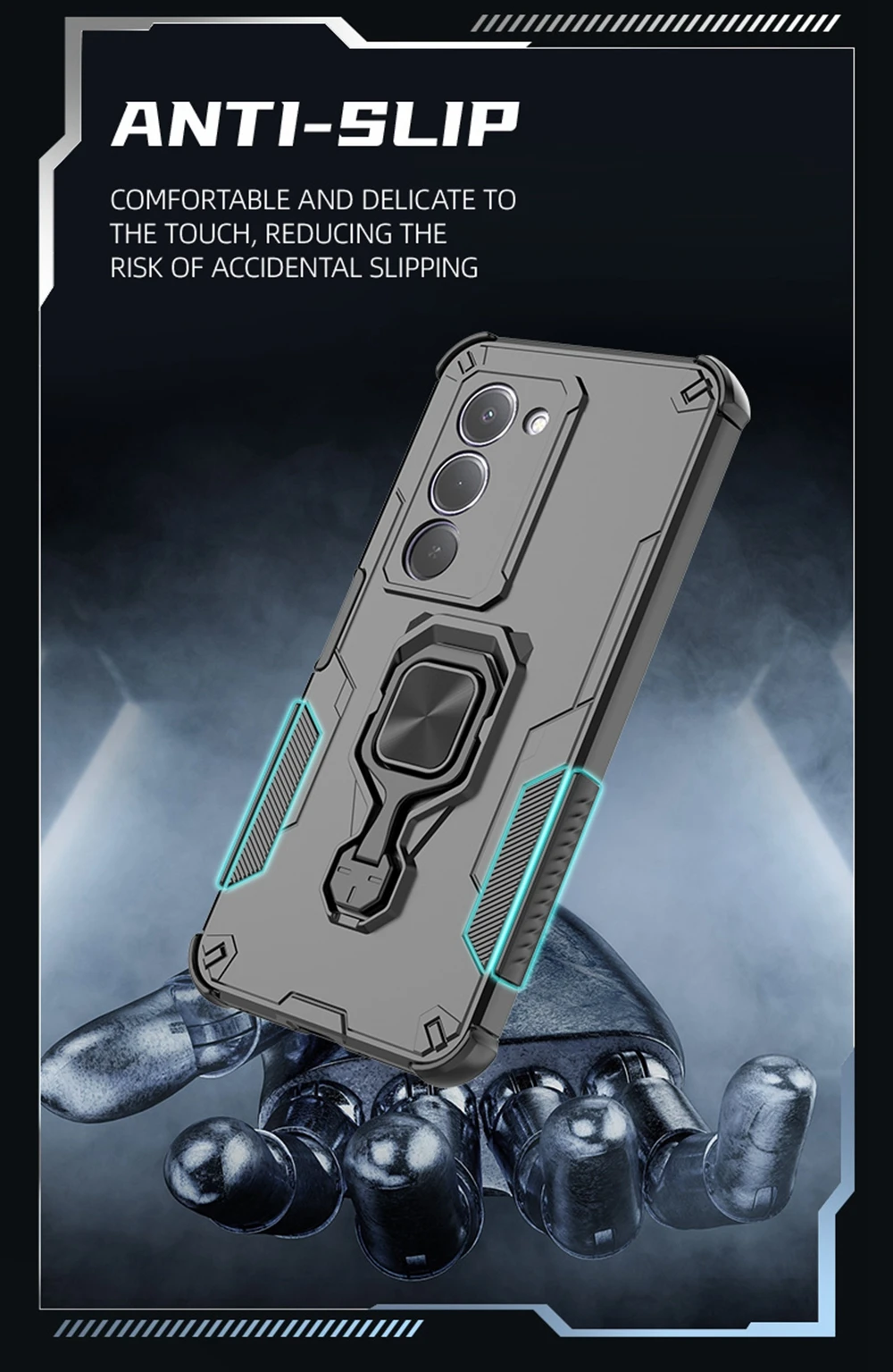 Construido con materiales PC + TPU, este estuche combina durabilidad con flexibilidad, ofreciendo un ajuste cómodo y un uso duradero.