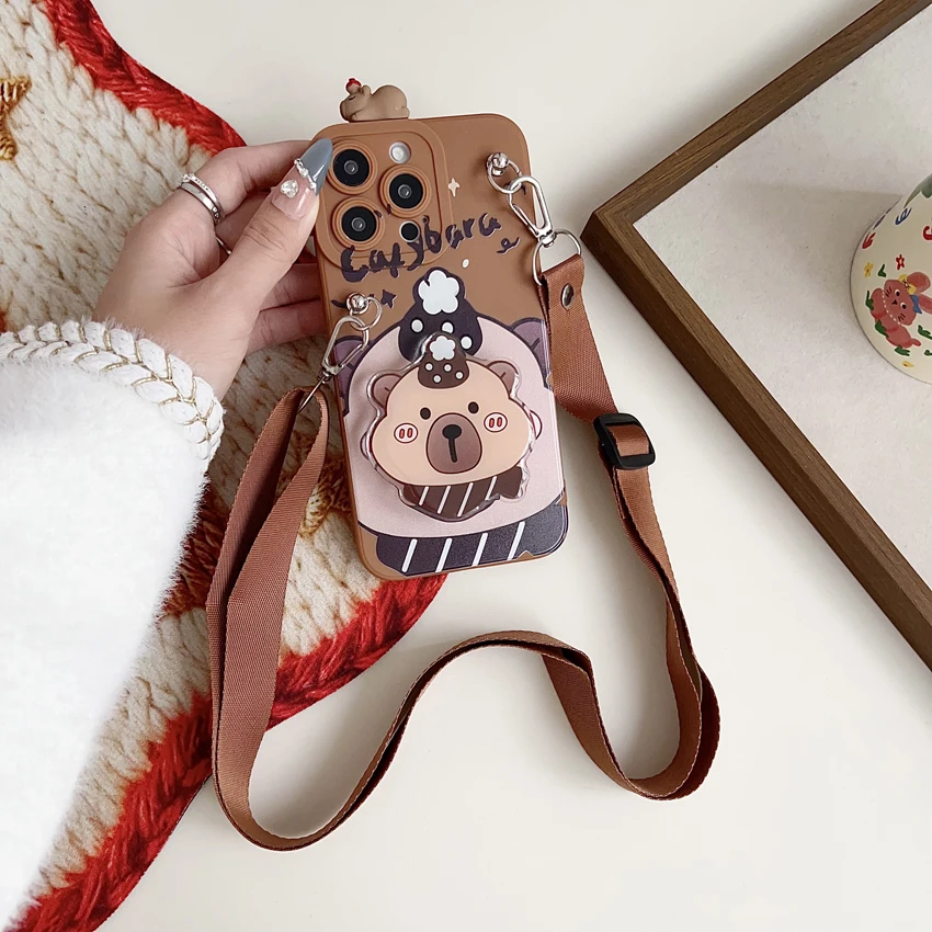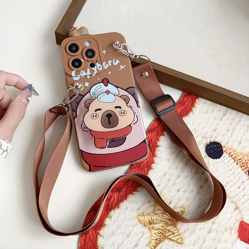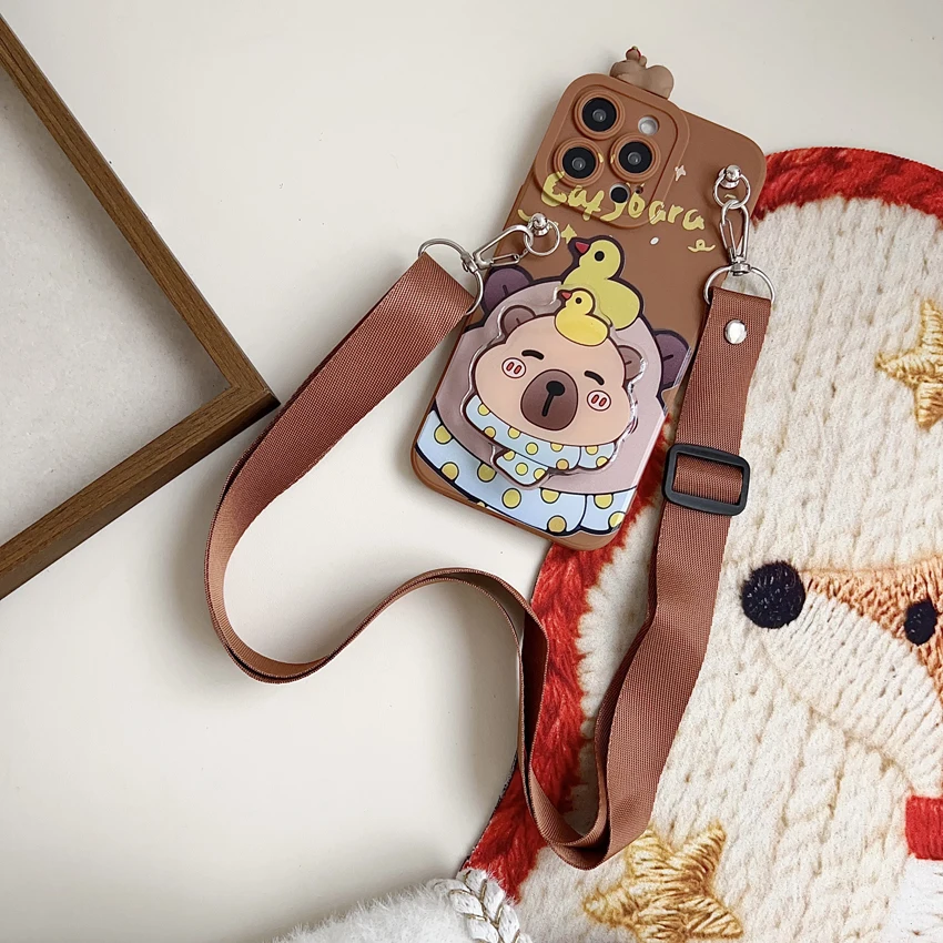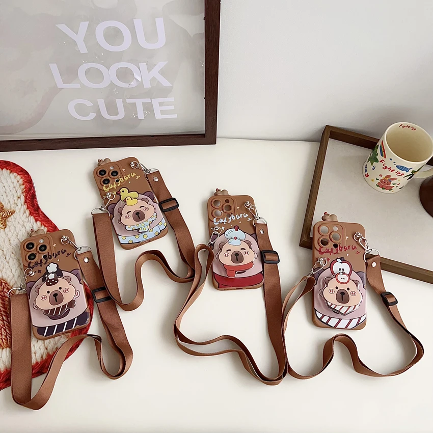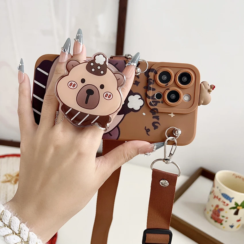 Para Xiaomi Redmi 8 9 9T A1 A3 Note 7 8 9 10 Pro Funda tímida Capibala con cuerda de soporte