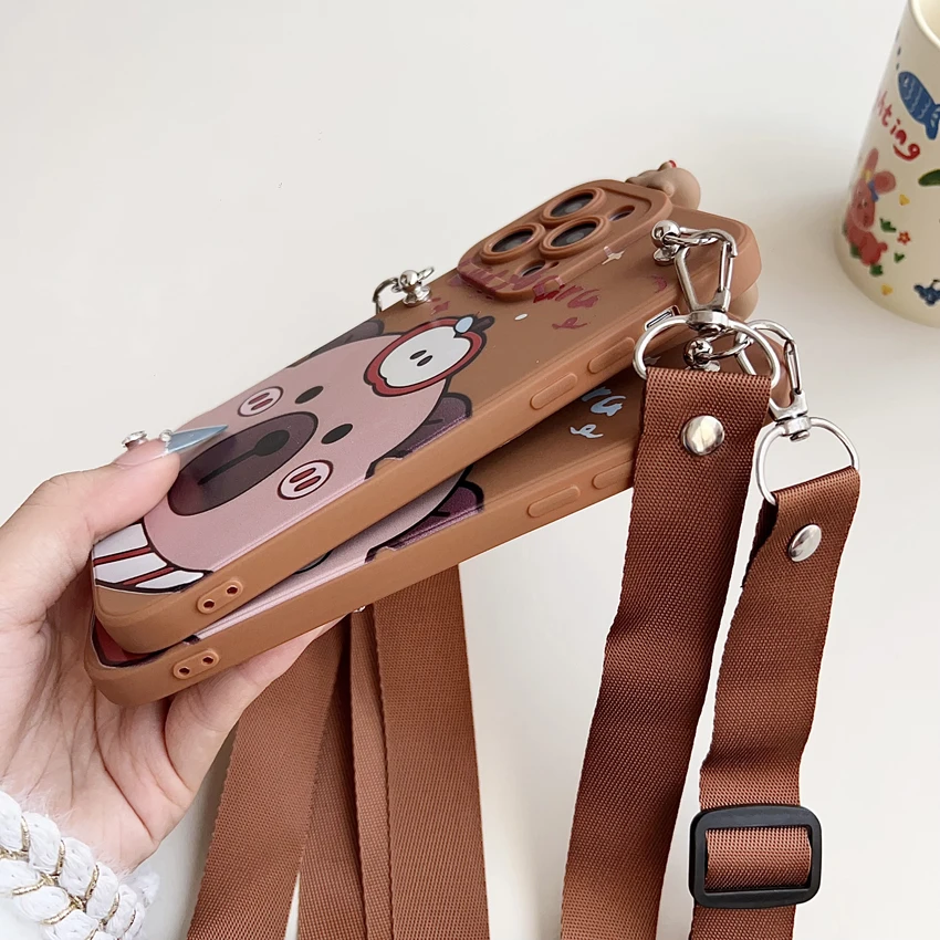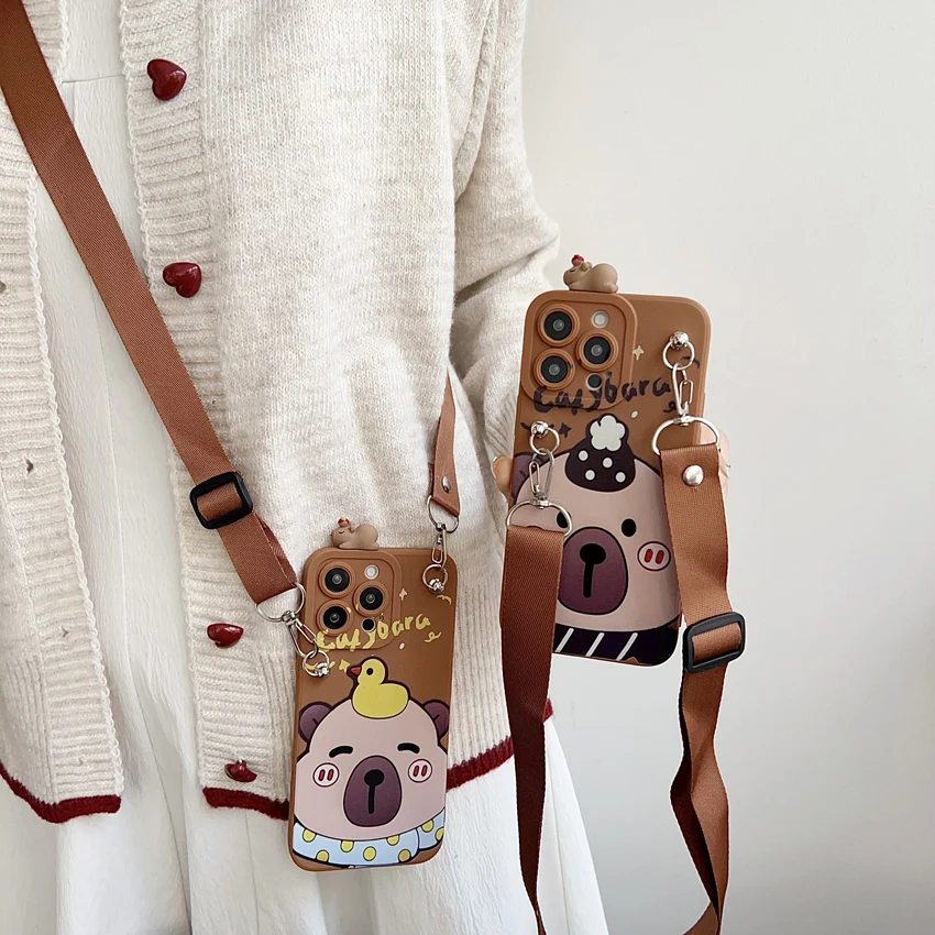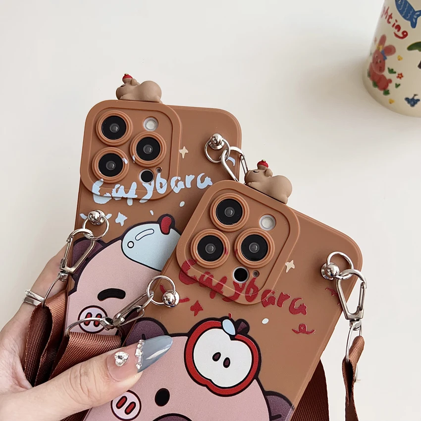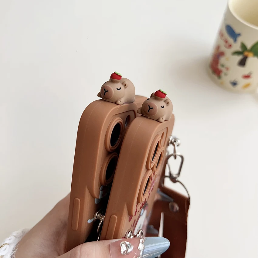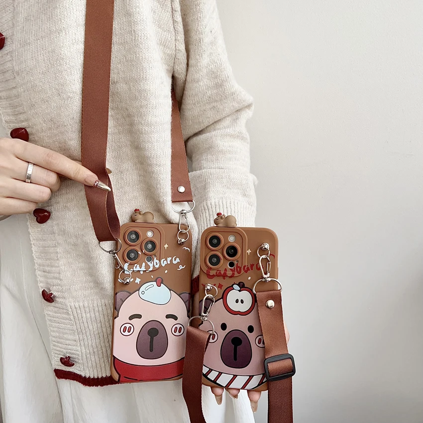 Para Xiaomi Redmi 8 9 9T A1 A3 Note 7 8 9 10 Pro Funda tímida Capibala con cuerda de soporte