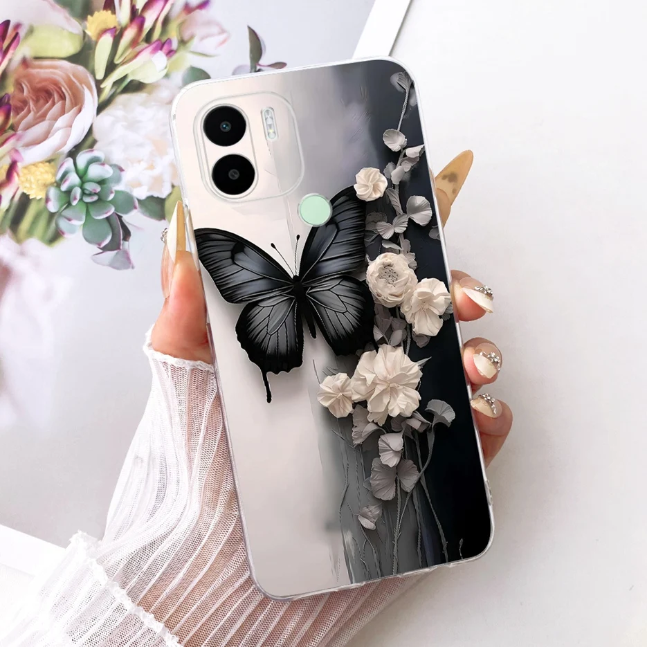 Para Xiaomi Redmi A1 Plus funda Redmi A2 + funda de lujo pintada con mariposa funda de silicona transparente para Redmi A2 Plus RedmiA1 + bolsas suaves