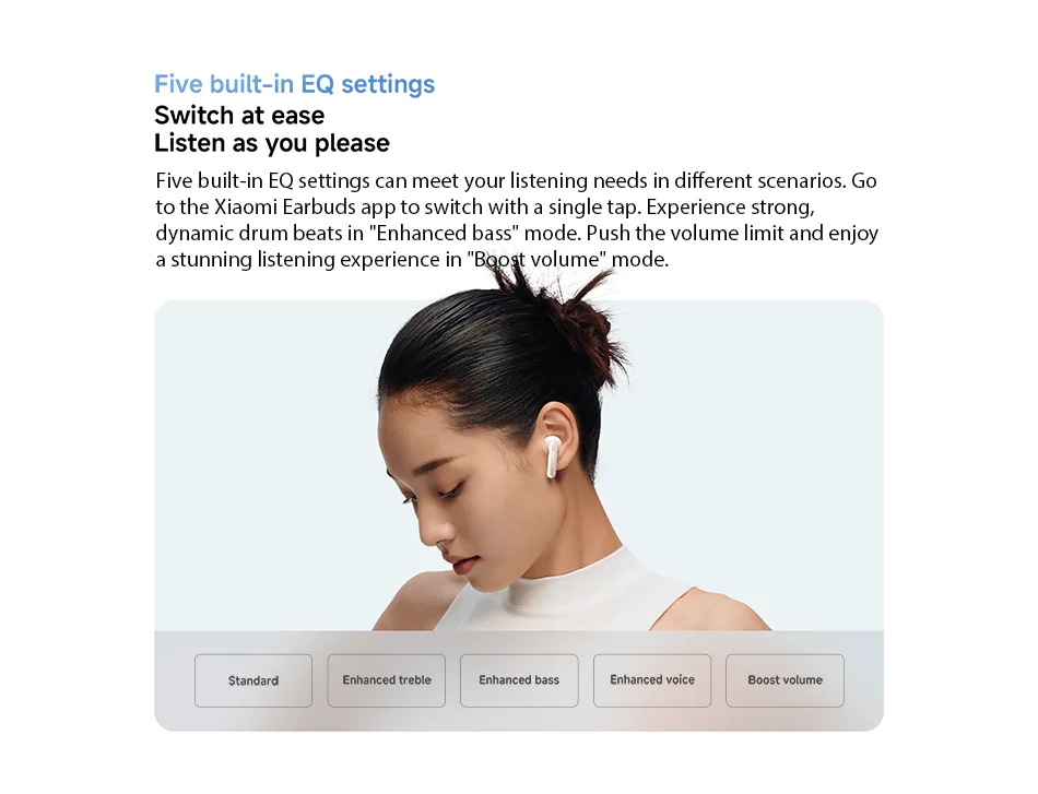 to the Xiaomi Earbuds app to switch with a single tap. Experience strong,