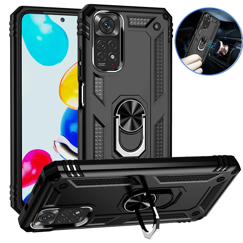 Comprar Para Xiaomi Redmi Note 11 11S 2022 funda magnética con anillo de Metal soporte parachoques armadura fundas para Redmi Note11 Pro 11E Pro 5G contraportada
