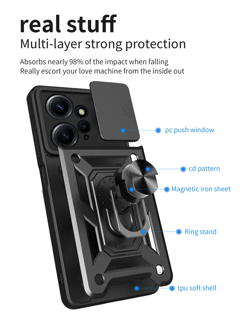 Comprar Para Xiaomi Redmi Note 12 4G funda protectora de lente de cámara armadura fundas a prueba de golpes para Xiomi Redmi Note12 4G cubierta de anillo de soporte magnético