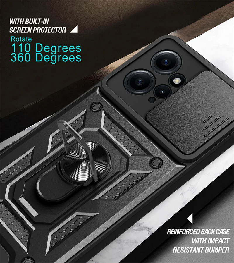 Comprar Para Xiaomi Redmi Note 12 4G funda protectora de lente de cámara armadura fundas a prueba de golpes para Xiomi Redmi Note12 4G cubierta de anillo de soporte magnético