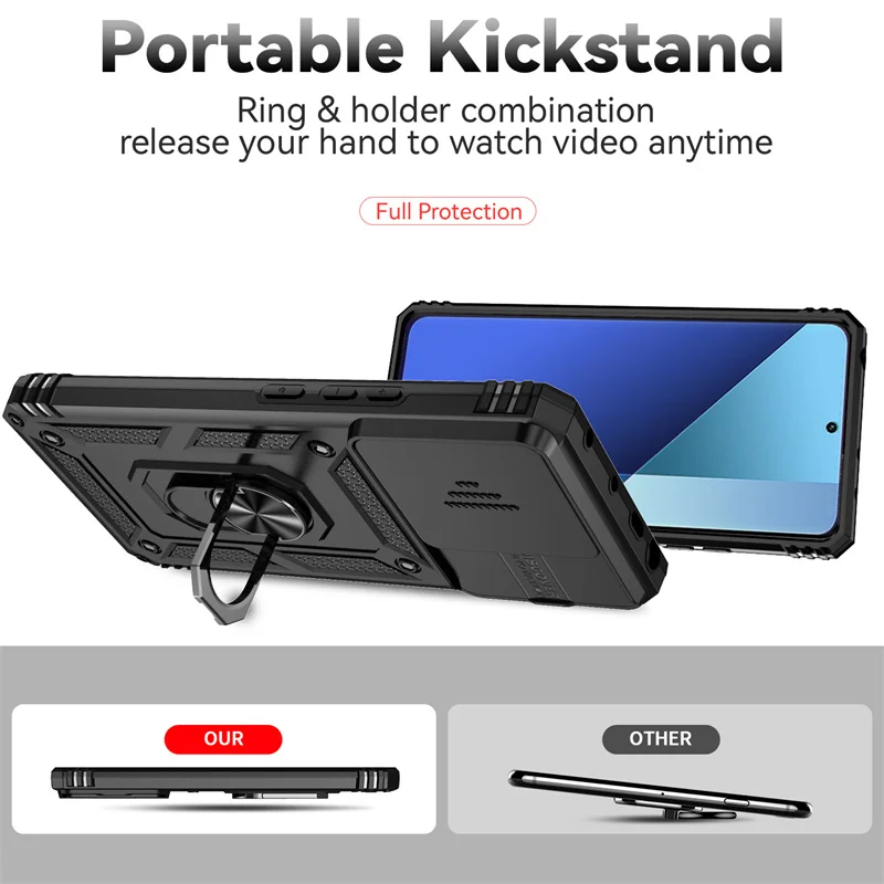 Comprar Para Xiaomi Redmi Note 13 Pro 4G Funda soporte magnético anillo soporte Armadura Funda para Redmi Note13 Pro 13Pro 4G cubierta protectora de lente deslizante