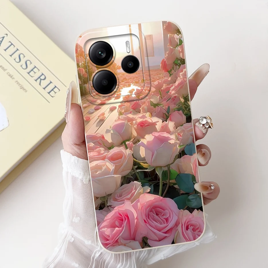 Para Xiaomi Redmi Note 14 4G 5G funda de lujo con flores de dibujos animados funda de teléfono suave de TPU para Redmi Note 14 Note14 5G bolsas de cubierta trasera