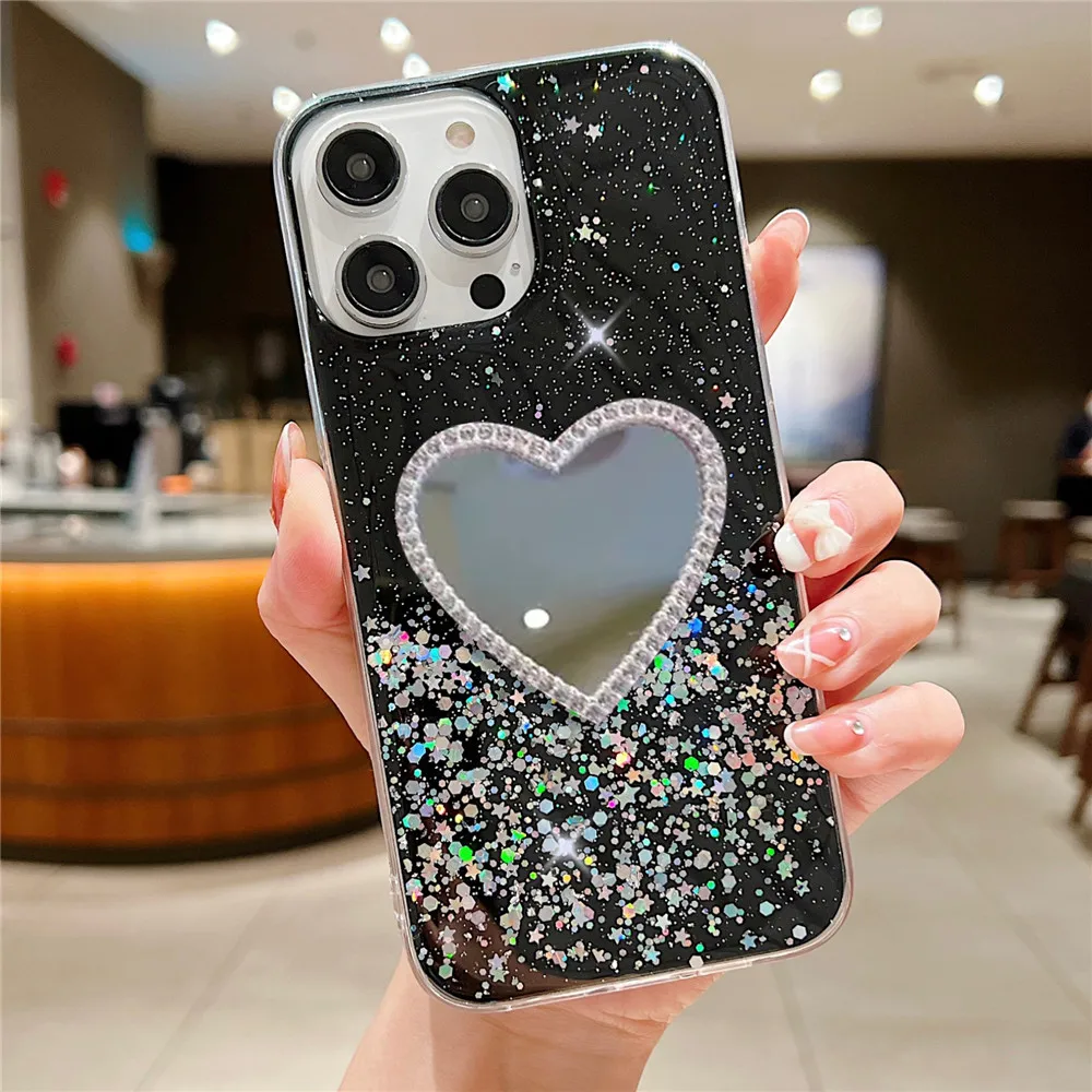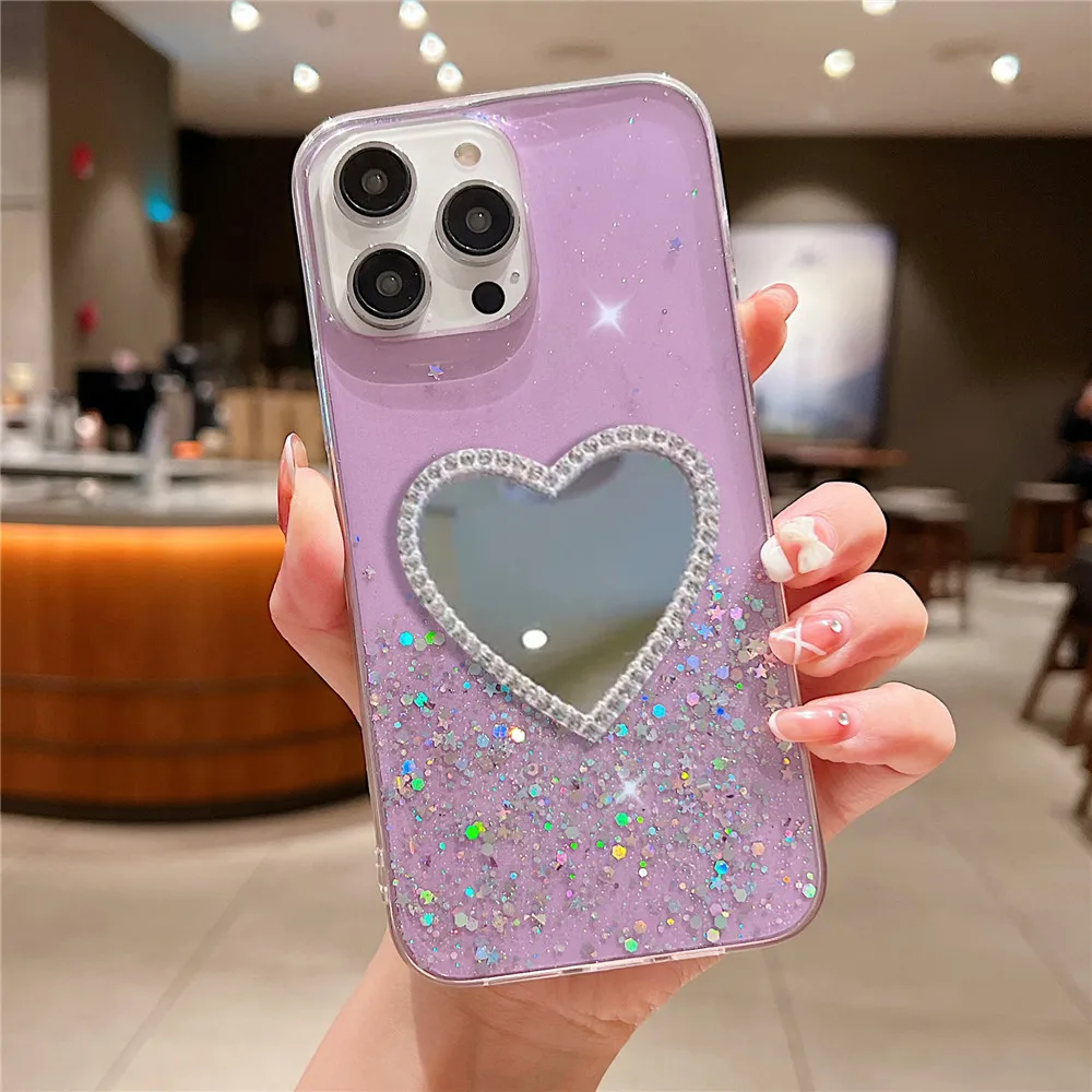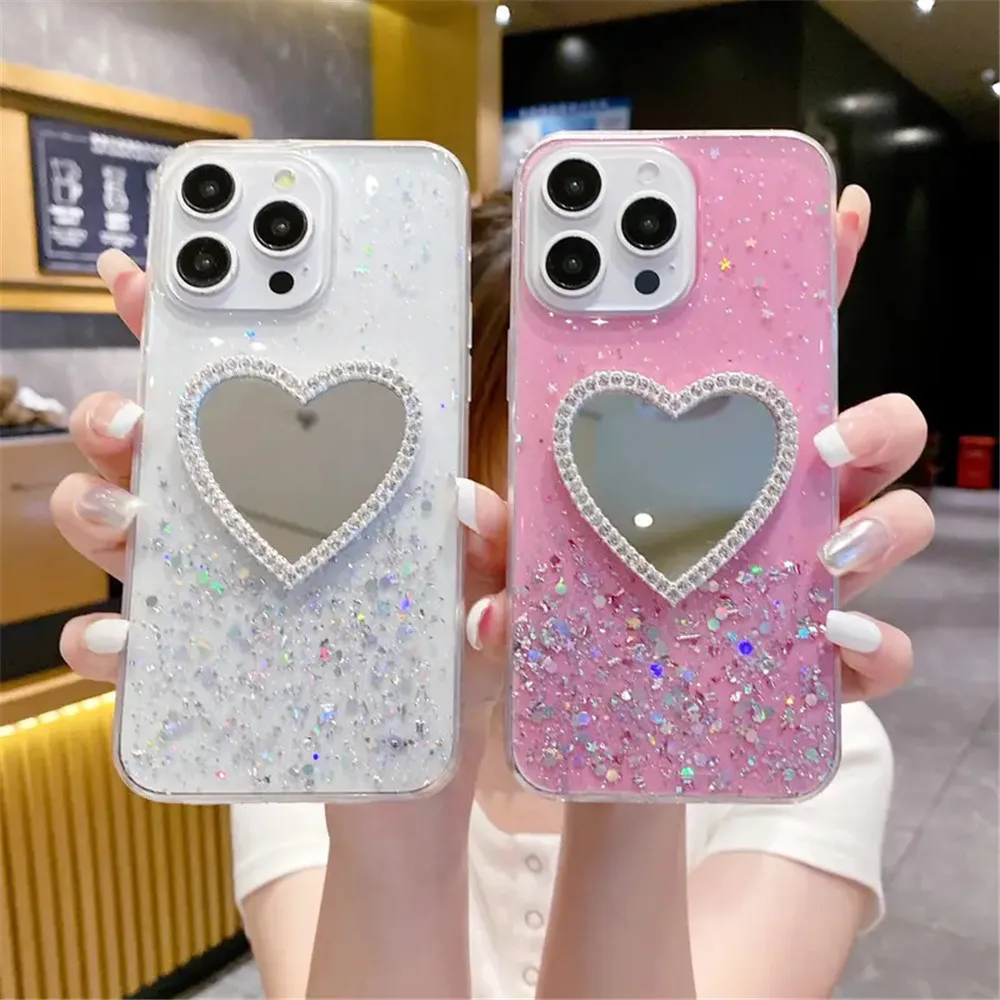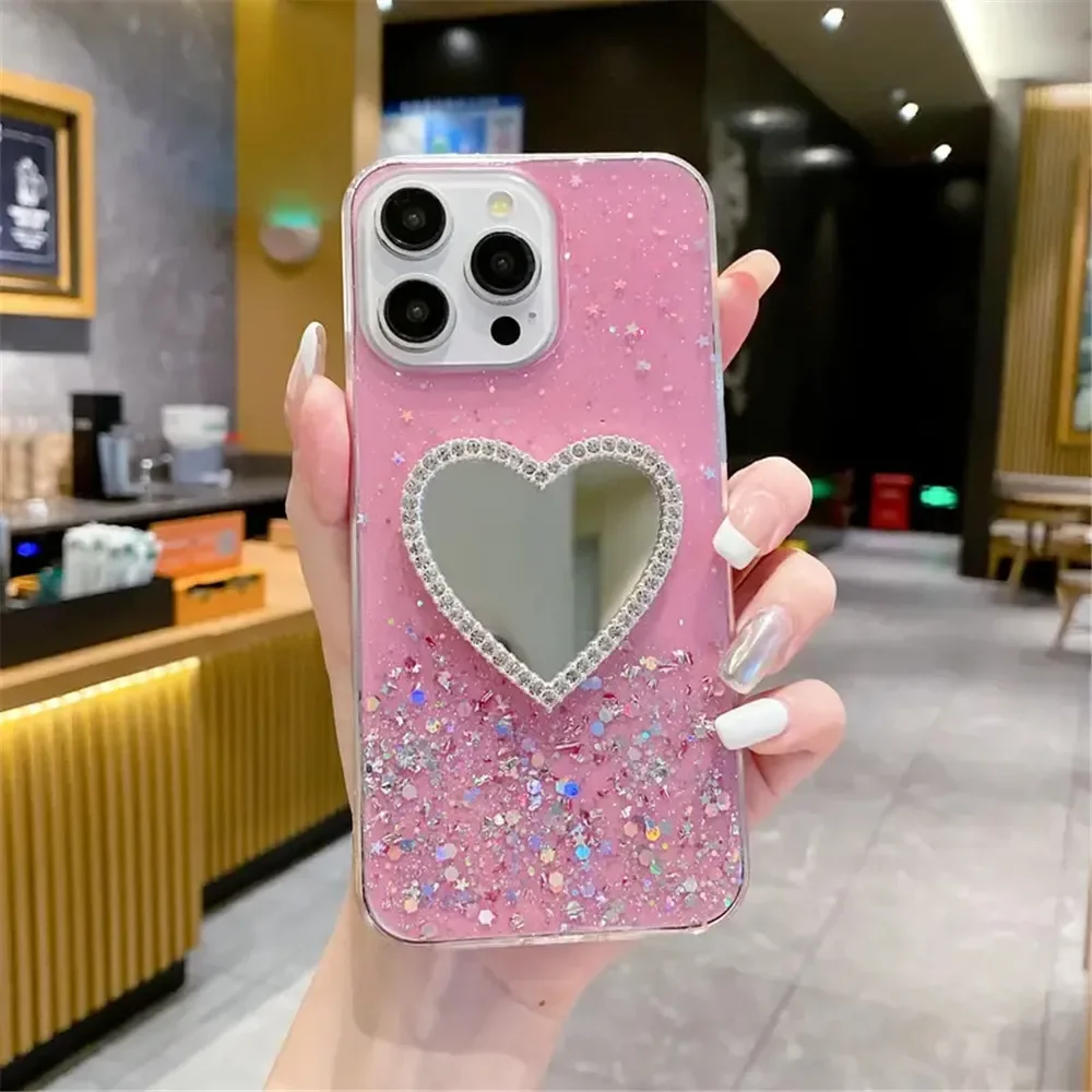 Para Xiaomi Redmi Note 14 Pro 5G funda de teléfono con espejo de diamante y corazón de lujo Redmy Note14 Pro 4G 5G Note 14 ProPlus + funda con purpurina